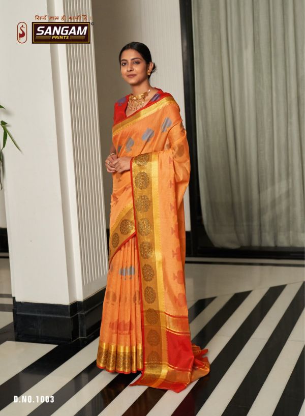 Sangam Presents Swarna 1001-1006 Series Beautiful Cotton Handloom Saree Collection