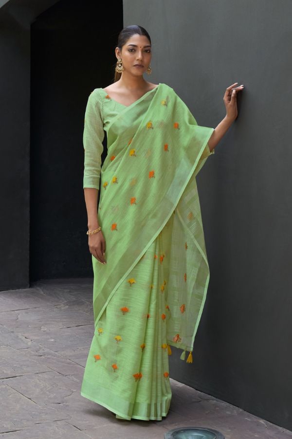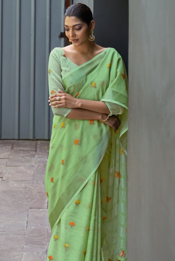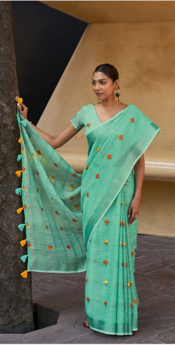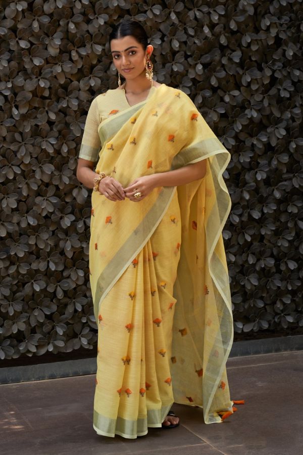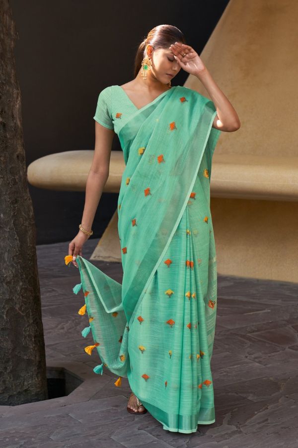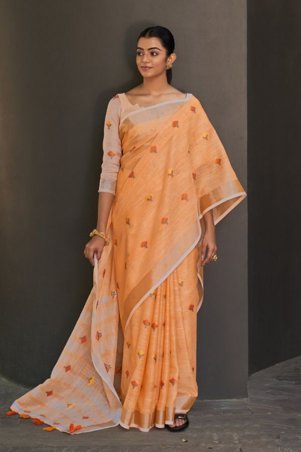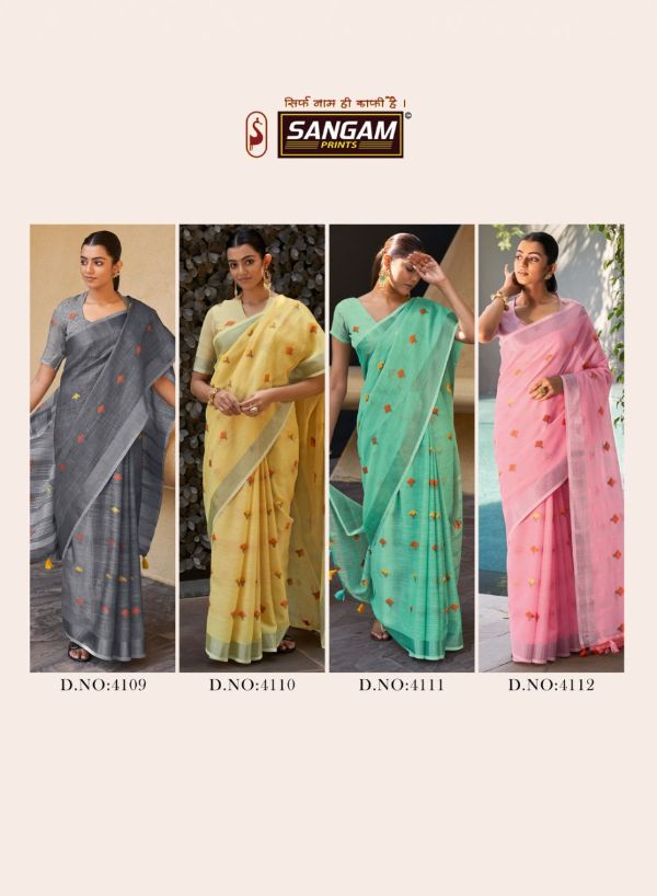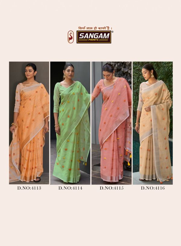 Sangam Prints Presents Ameera 4109-4116 Series Beautiful Linen Saree Collection #1671
