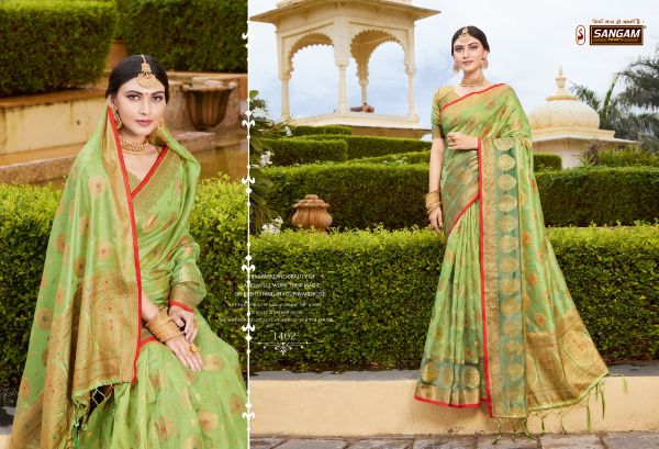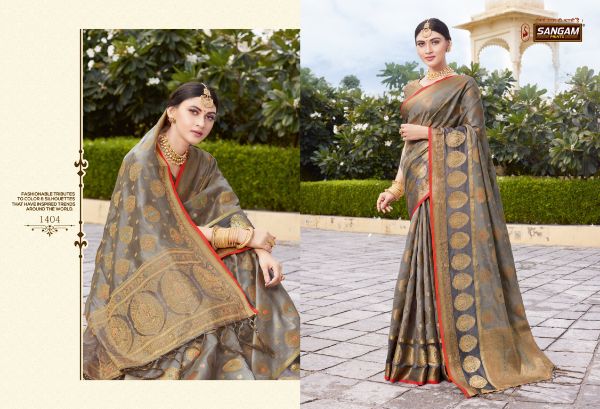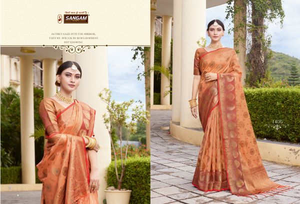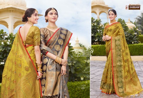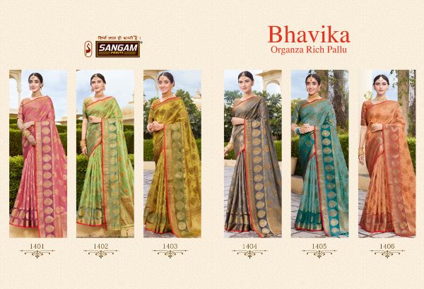 Sangam Prints Presents Bhavika 1401 - 1406 Series Fancy Organza Beautiful Designer Festival Wear Saree Collection Wholesale Rate