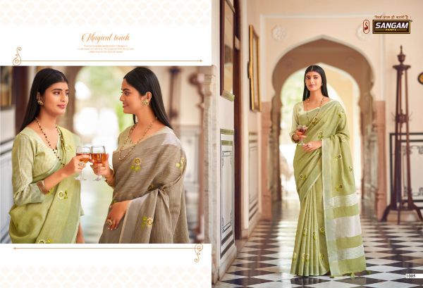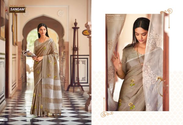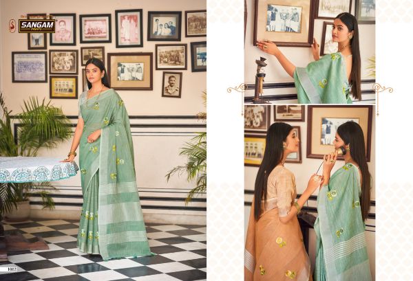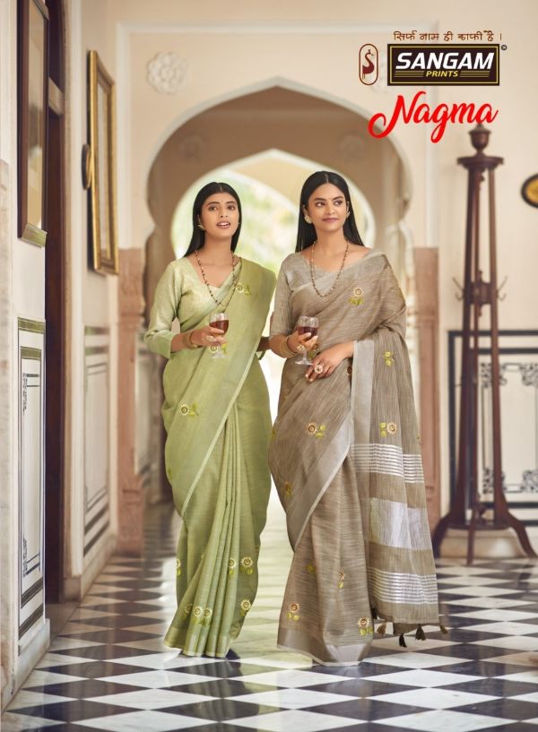 Sangam Prints Presents Nagma 1001-1006 Series Beautiful Linen Saree Collection