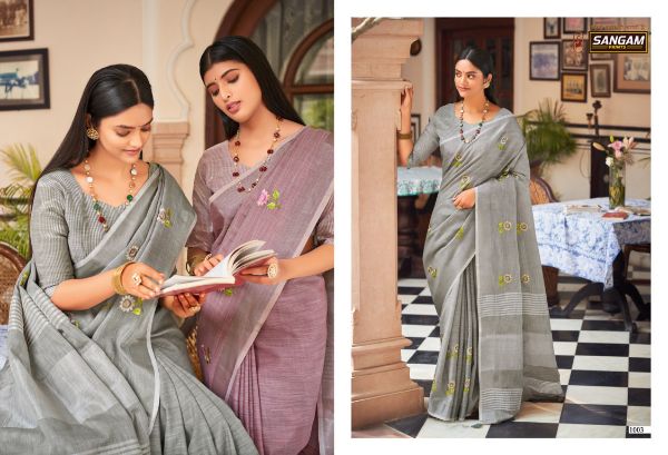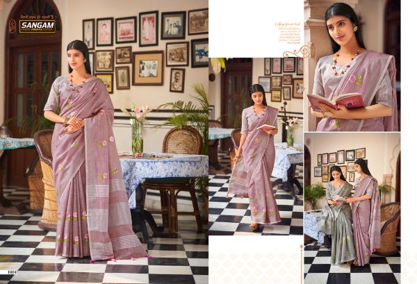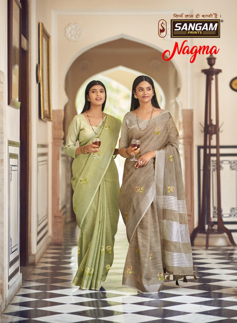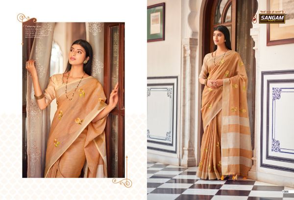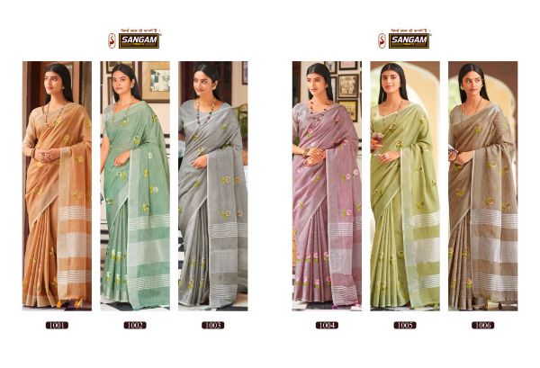 Sangam Prints Presents Nagma 1001-1006 Series Beautiful Linen Saree Collection#1952