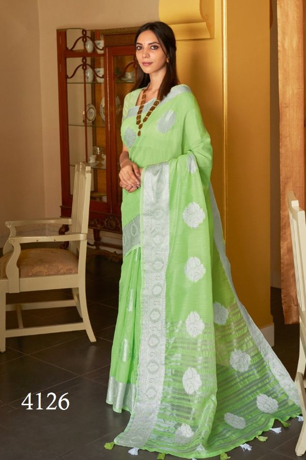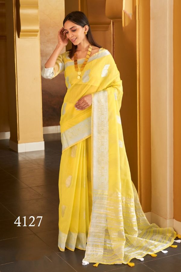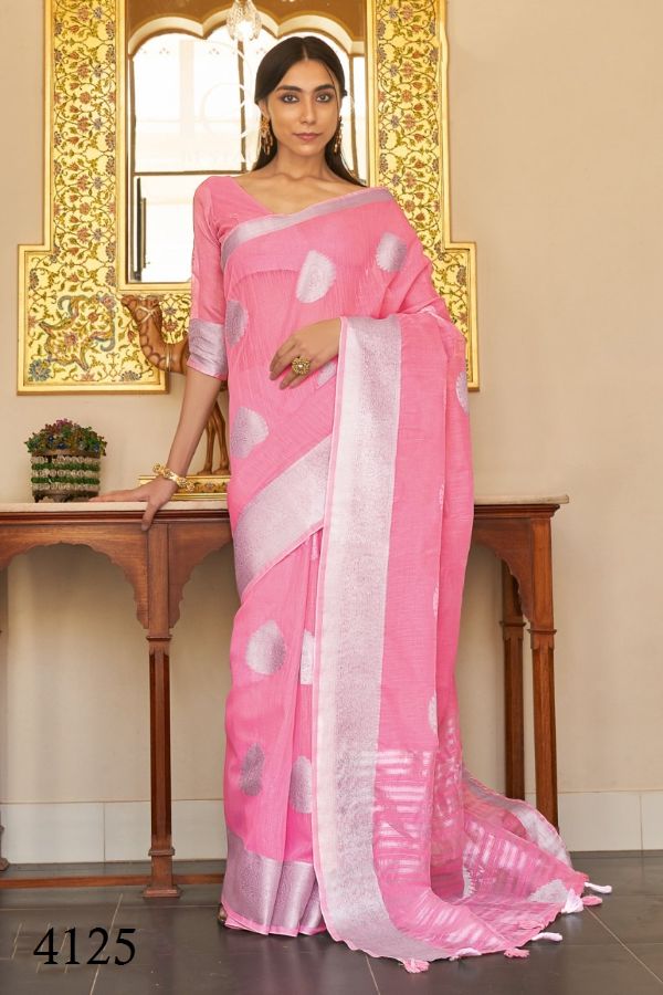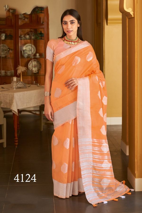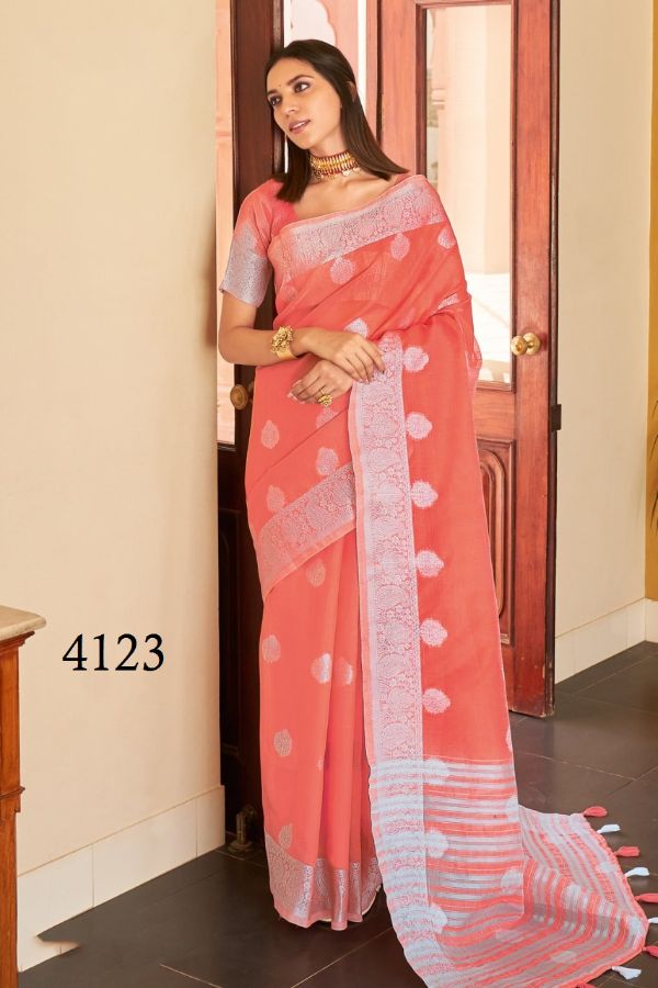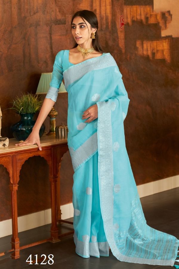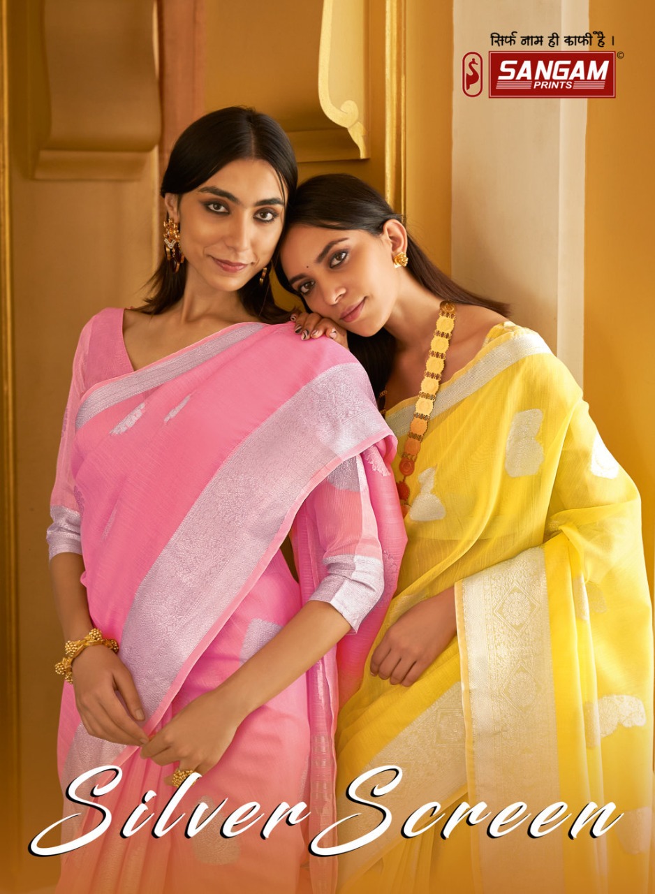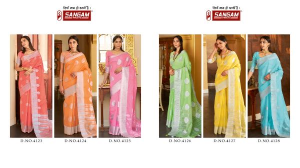 Sangam Prints Presents Silver Screen 4123-4128 Series Beautiful Linen Saree Collection