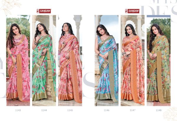 Sangam Prints Presents Sitare 1143-1148 Series Beautiful Organza Saree Collection