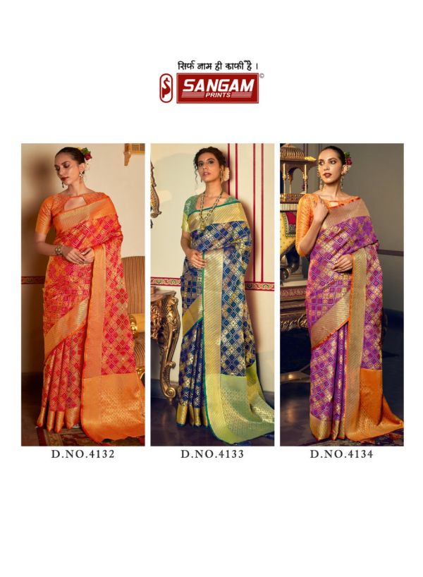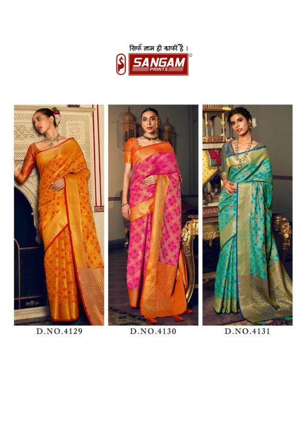 Sangam Prints Presents Zari Patola 4129-4134 Series Patola Silk Fancy Saree Collection #1529