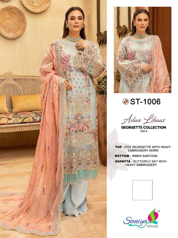 Saniya Trendz Presents Adan Libaas 1006 - 1007 Series Faux Georgette With Heavy Embroidery With Hand Work Fancy Pakistani Suits Collection