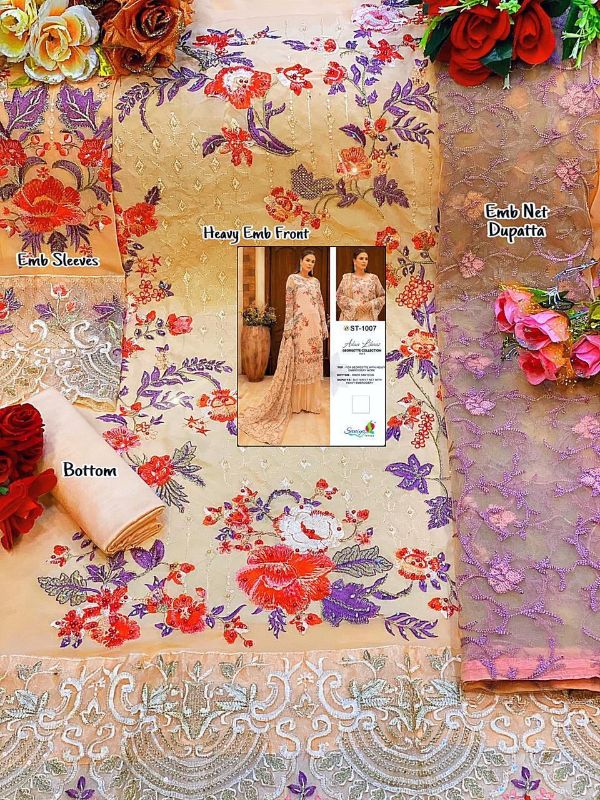 Latest Designer pakistani suits Collection. Exclusive with Foil & Thread Embroidery Work gives a Fashionable Look, High sensed style and luxury makes you ready for envious glazes and very rich & Royal in the Party, Function, Event etc.