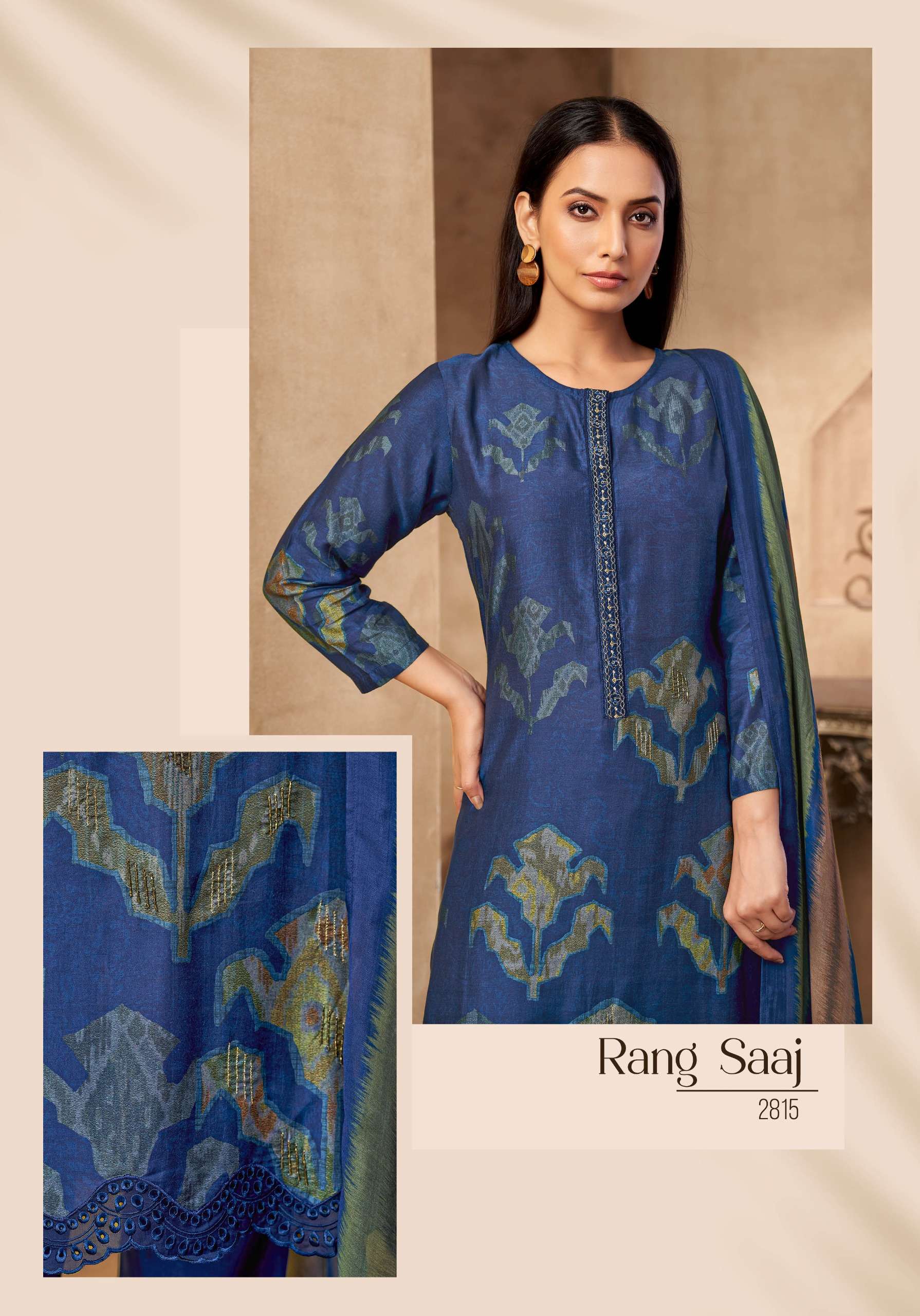 PURE MUSLIN SILK DIGITAL PRINT WITH HAND WORK. SILK EMBROIDERY DAMAN TREDAL PATCH AND SILK EMBROIDERY PLAKET