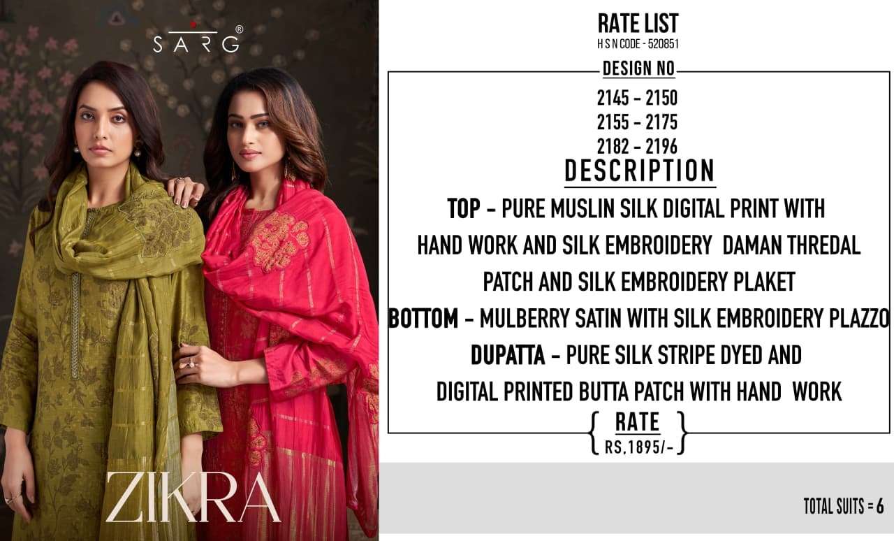 Catalogue: | SARG ZIKRA URE MUSLIN SILK DIGITAL PRINTED SUIT WITH HAND EMBROIDERY WORK |