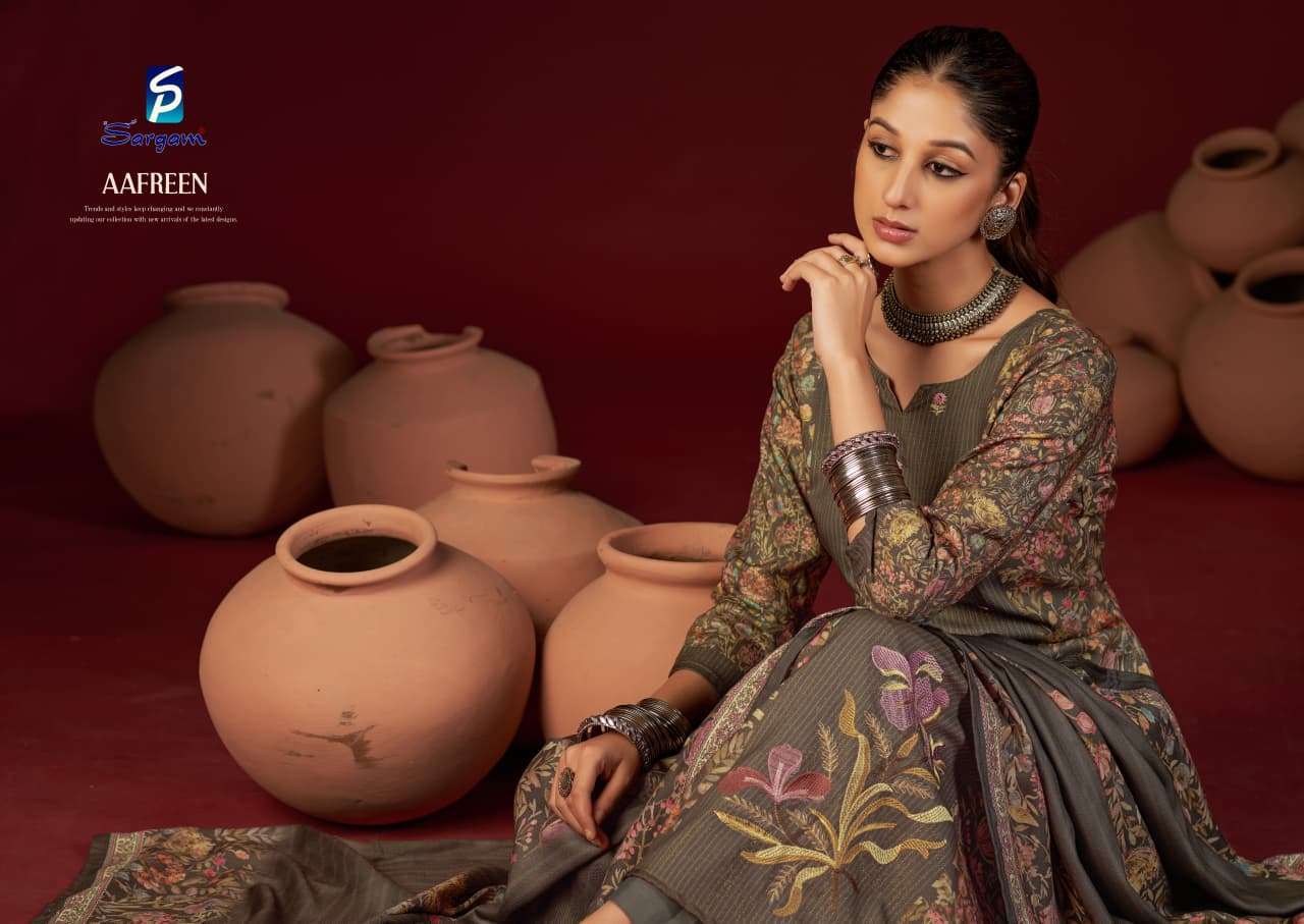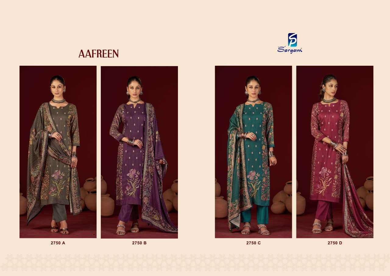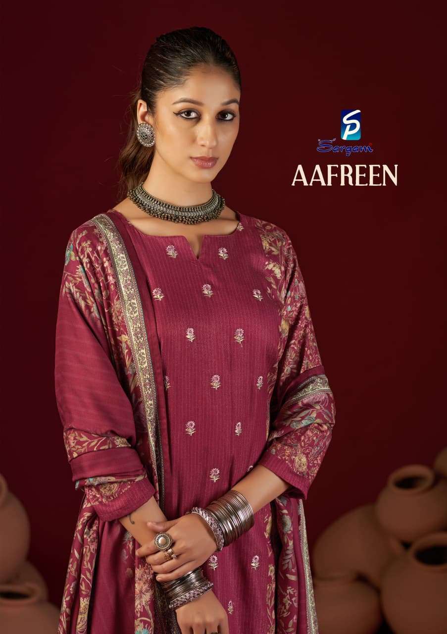 | Catalogue: | Sargam AAFREEN Pure Viscose Pasmina Simmer Suit With Embroidery Work |