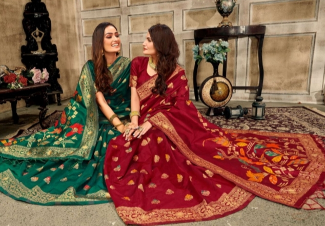 Saroj Maithili Presents 1001 To 1006 Series Designer Banarasi Silk Thread Weaving Women Party Wear Fancy Saree Collection