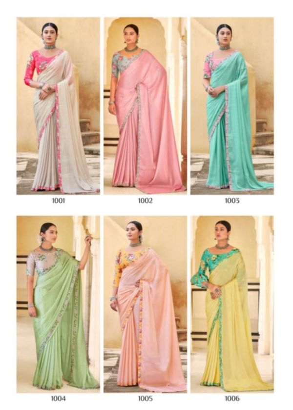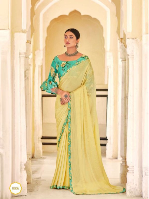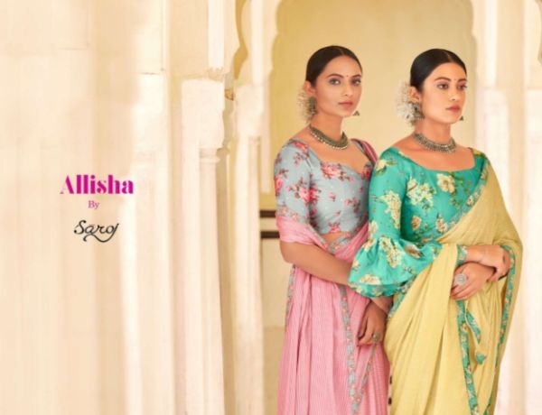 Saroj Presents Alisha 1001-1006 Series Weightless Georgette With Digital Border Saree Collection#1593