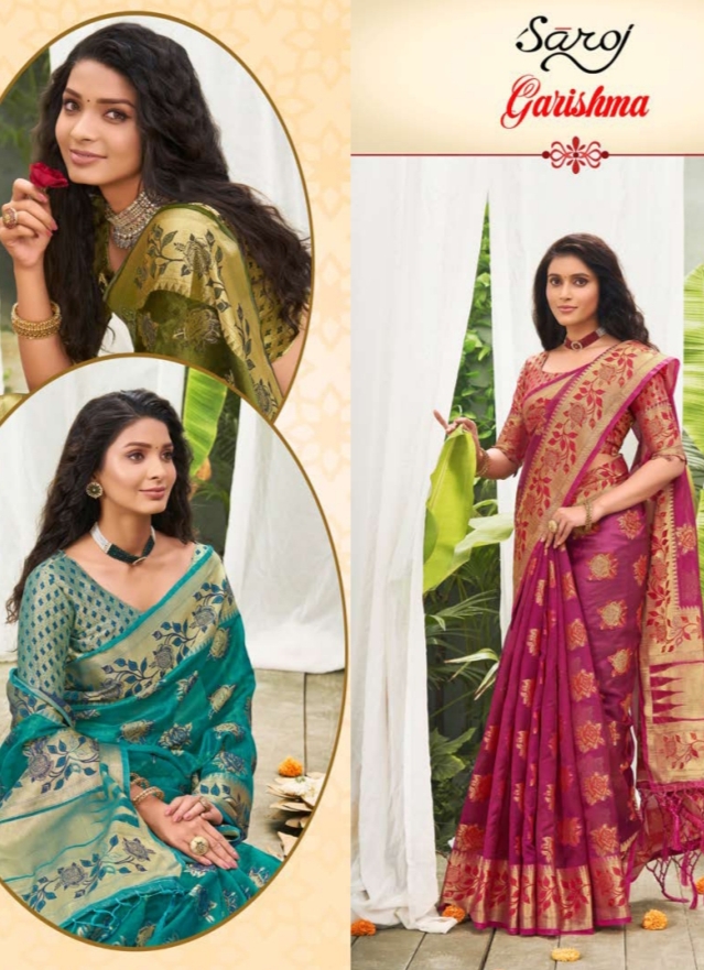 Saroj Presents Garishma 257001-257006 Series Organza With Rich Pallu Saree Collection#1872