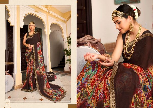 Latest Designer saree Collection. Exclusive with Foil & Thread Embroidery Work gives a Fashionable Look, High sensed style and luxury makes you ready for envious glazes and very rich & Royal in the Party, Function, Event etc.