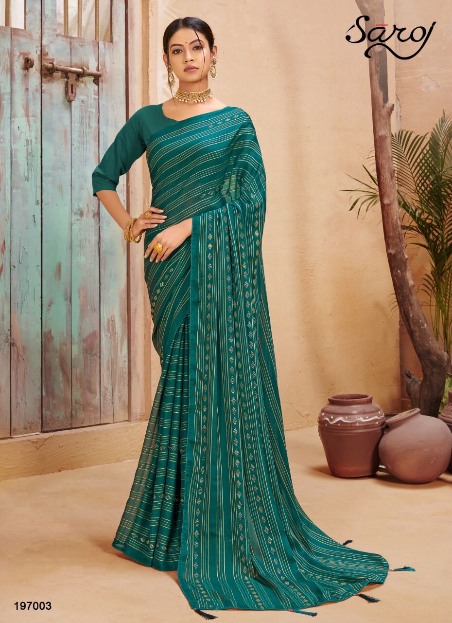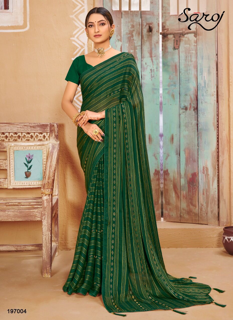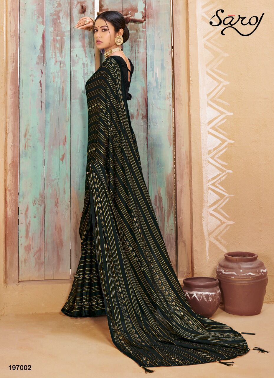 Saroj Presents Haseen 197001 - 197006 Series Georgette With Satin And Jari Lining And Swaroski Work Event Wear Saree Collection