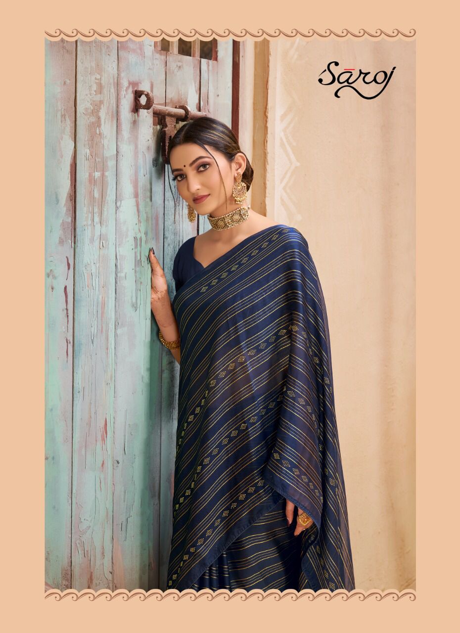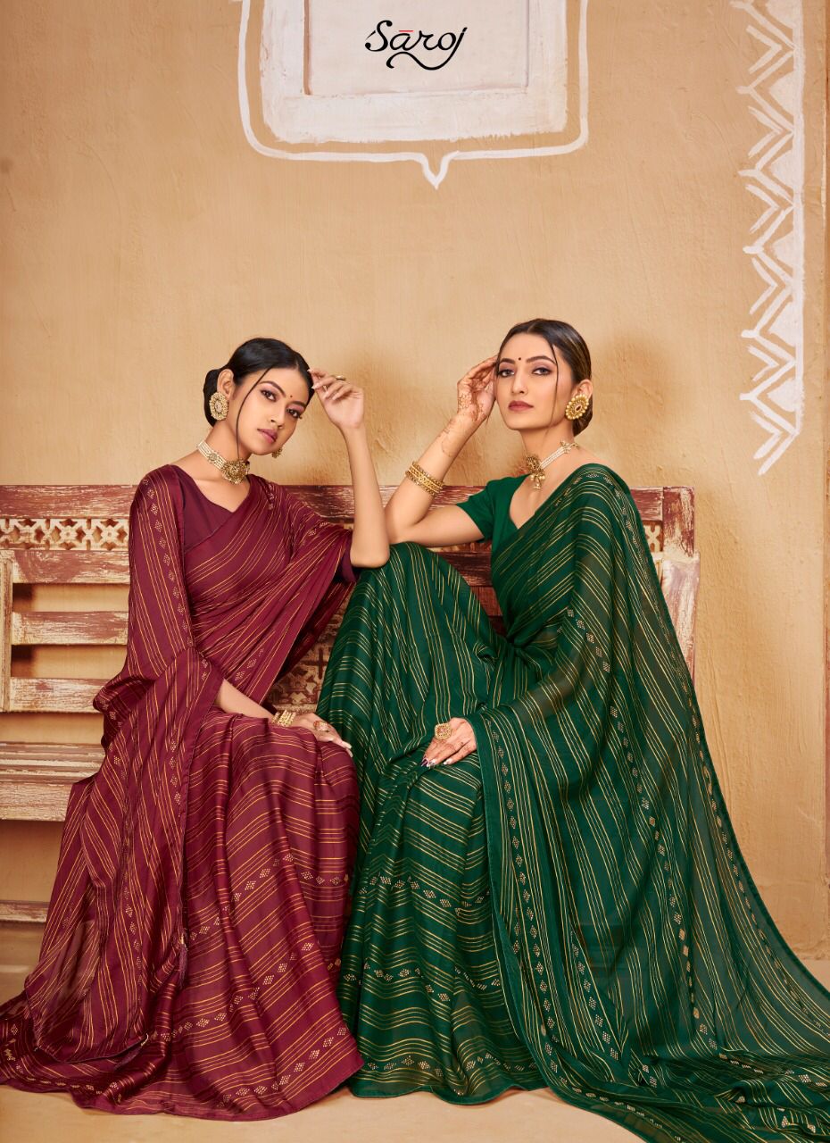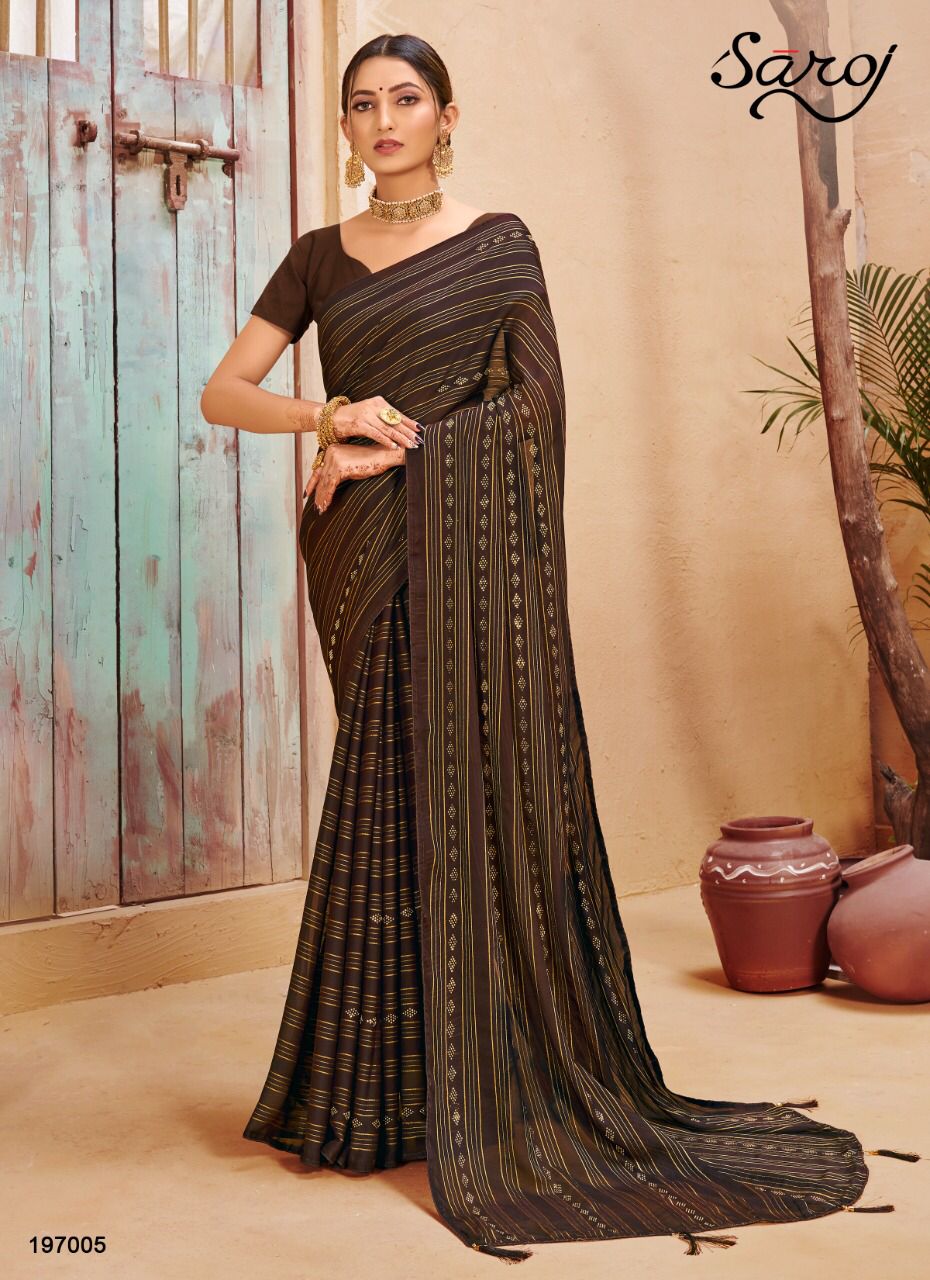 Saroj Presents Haseen 197001 - 197006 Series Georgette With Satin And Jari Lining And Swaroski Work Event Wear Saree Collection