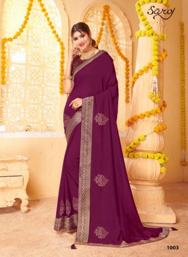 Saroj Presents Kundan Silk 1001-1008 Series Vichitra With Designer Work Saree Collection