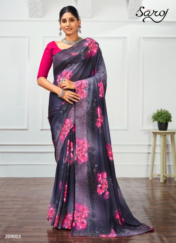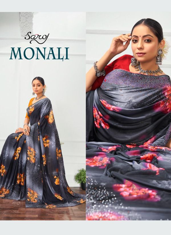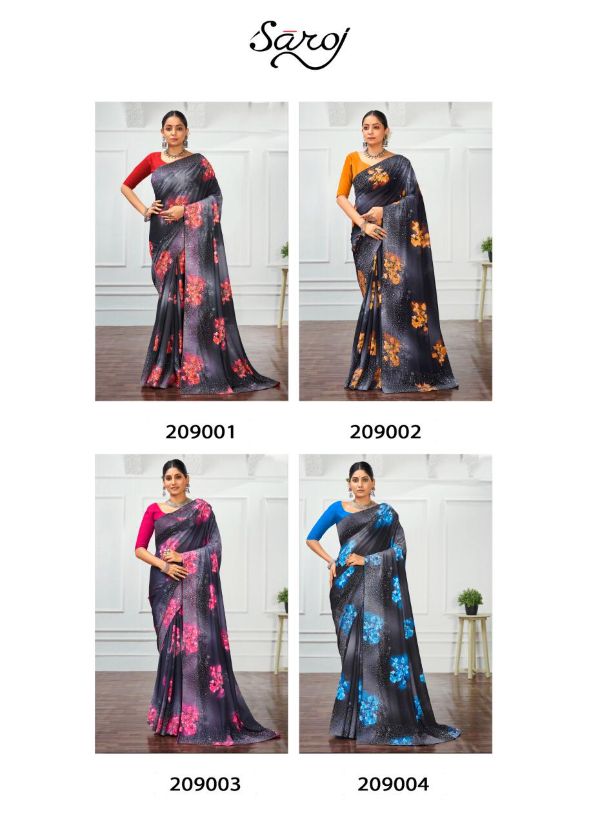 Saroj Presents Monali 209001 - 209004 Series Important Lycra With Digital Print Party Wear Saree Collection