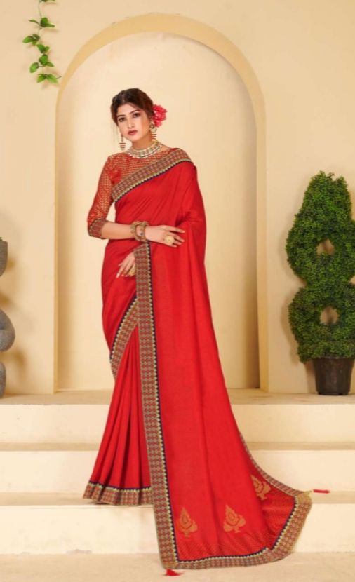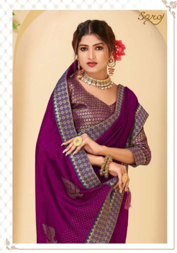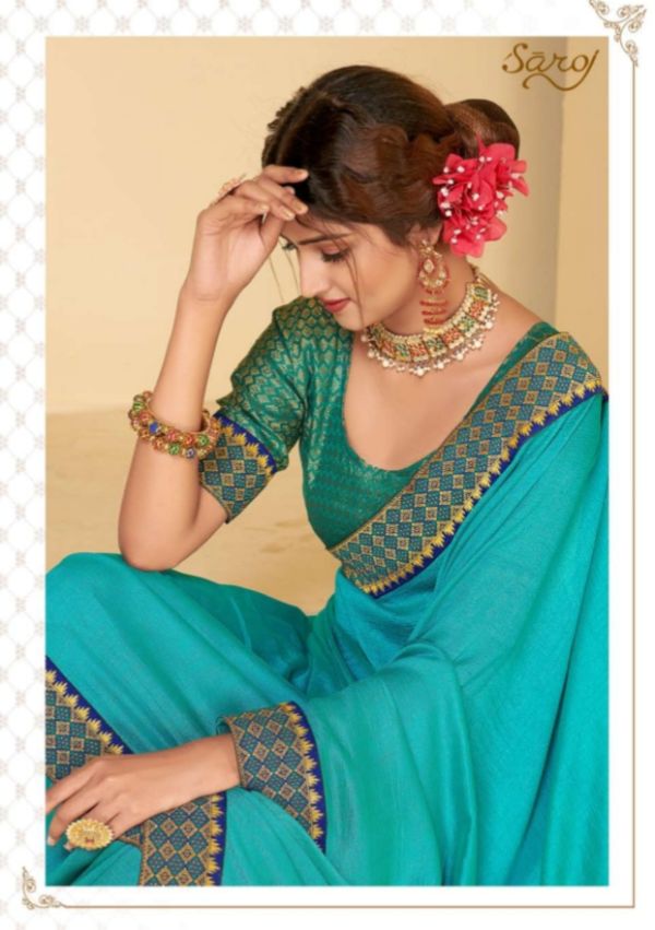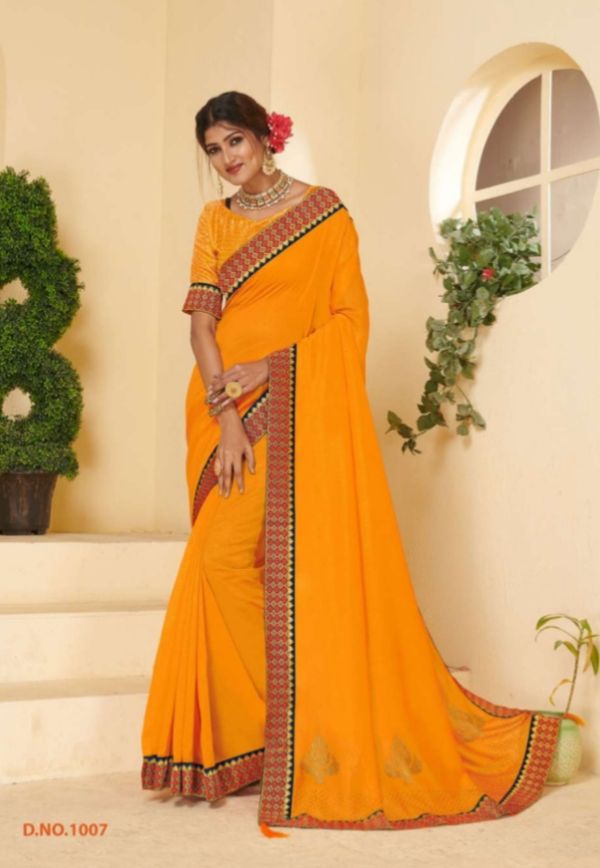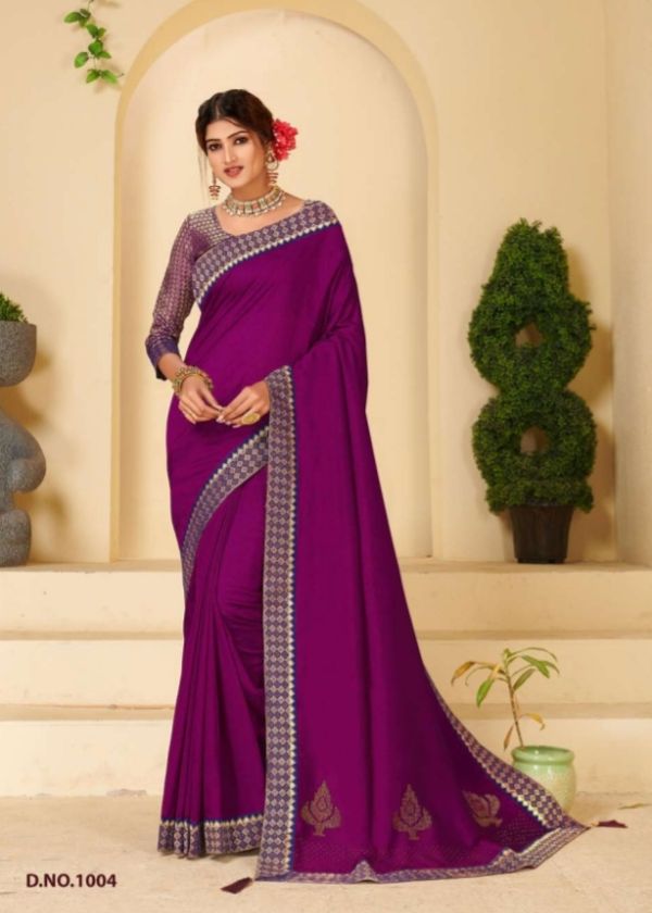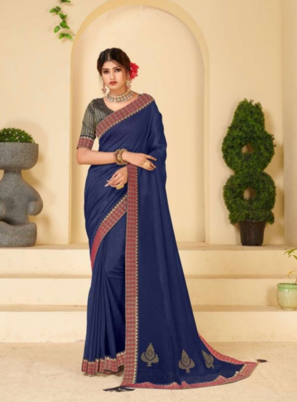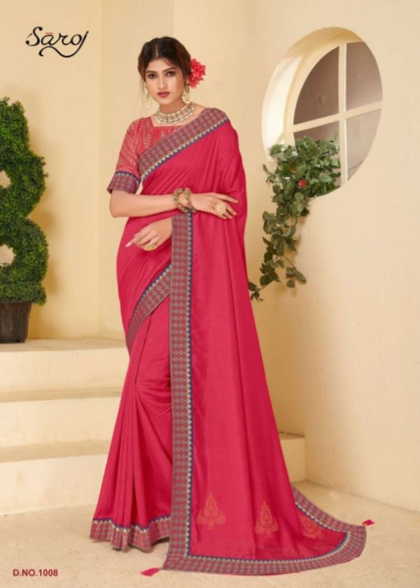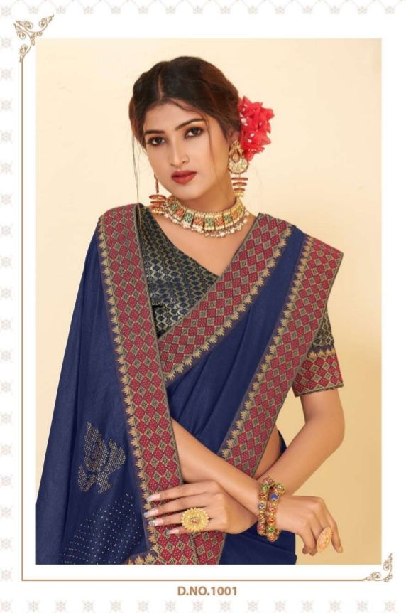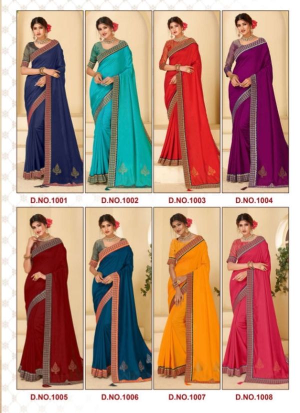 Saroj Presents Navyaa 1001,1002,1003,1004,1005,1006,1007,1008 Series Vichitra Brocade Border Swarovski Work Saree Collection#1988