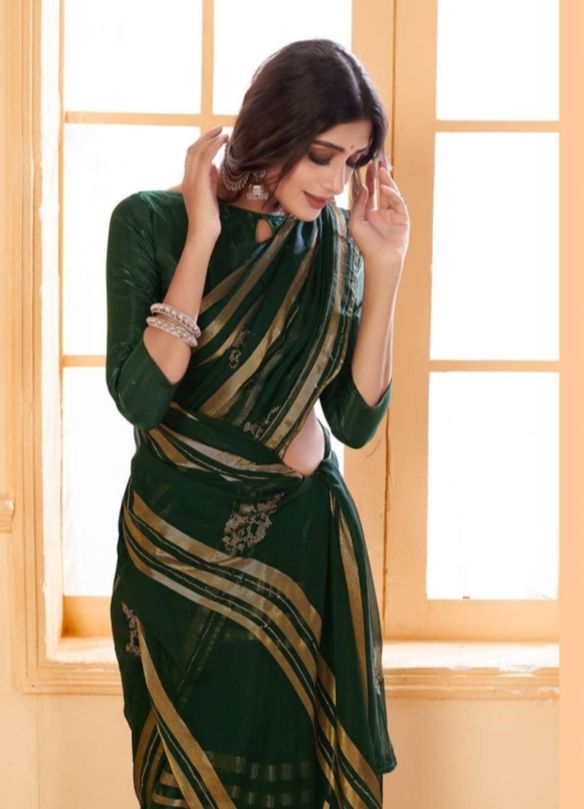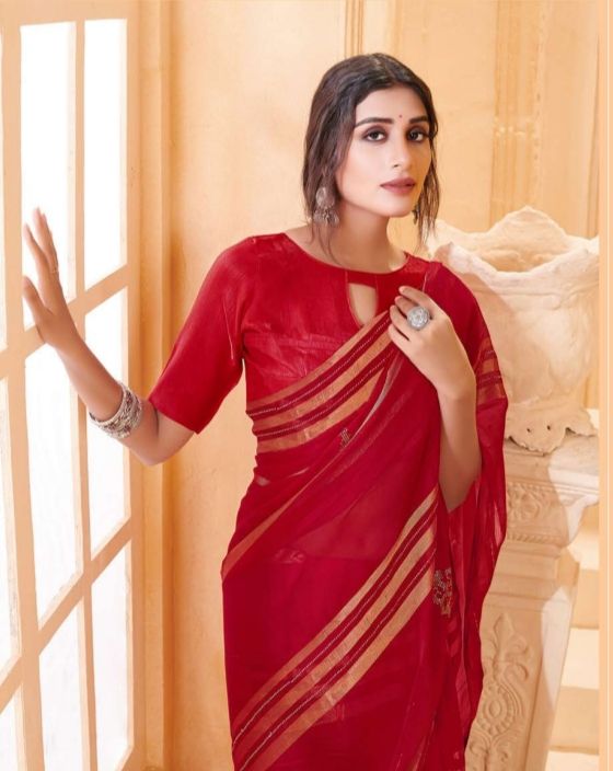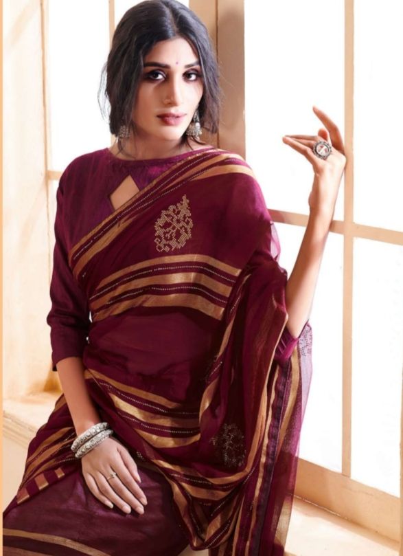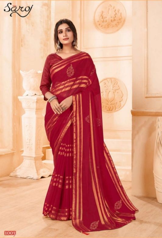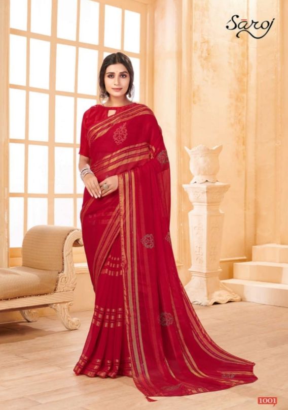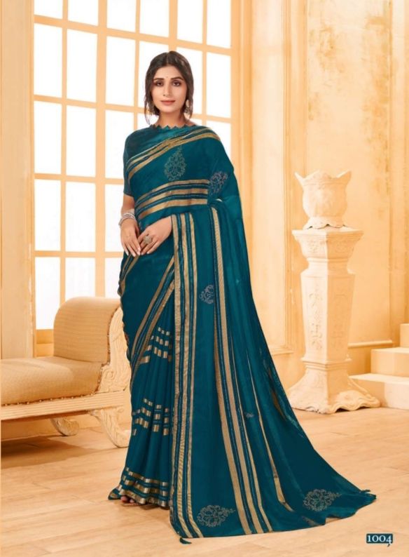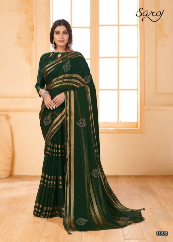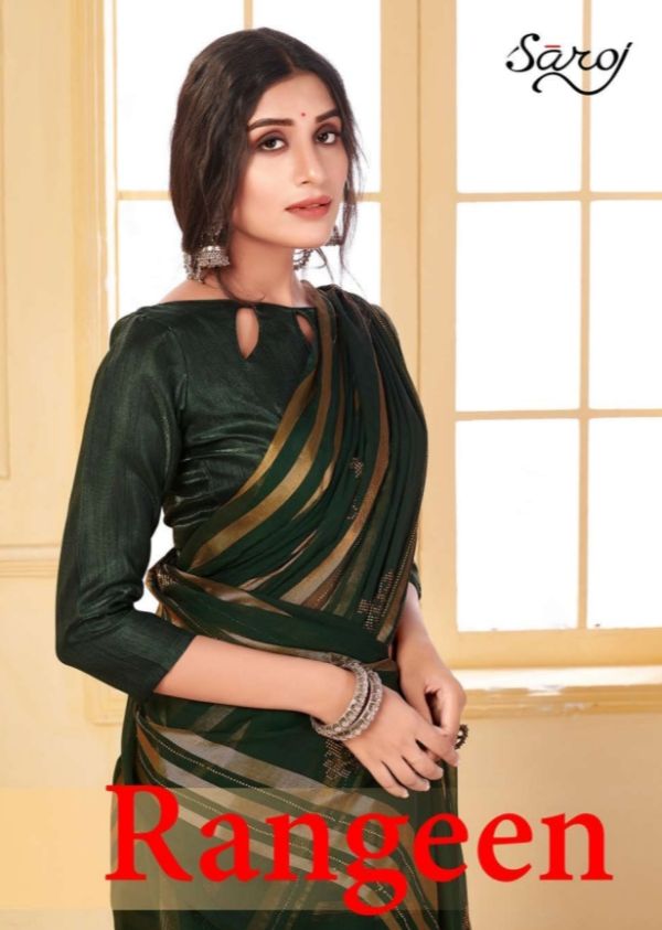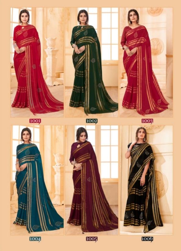 Saroj Presents Rangeen 1001-1006 Series Chiffon Satin Patta And Swaroski Work Saree Collection#1633