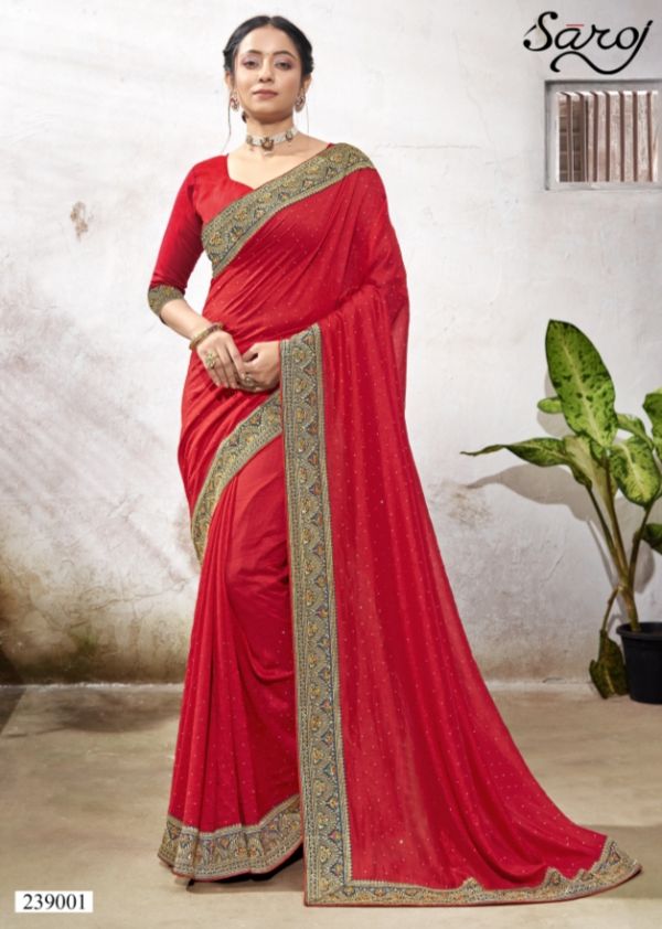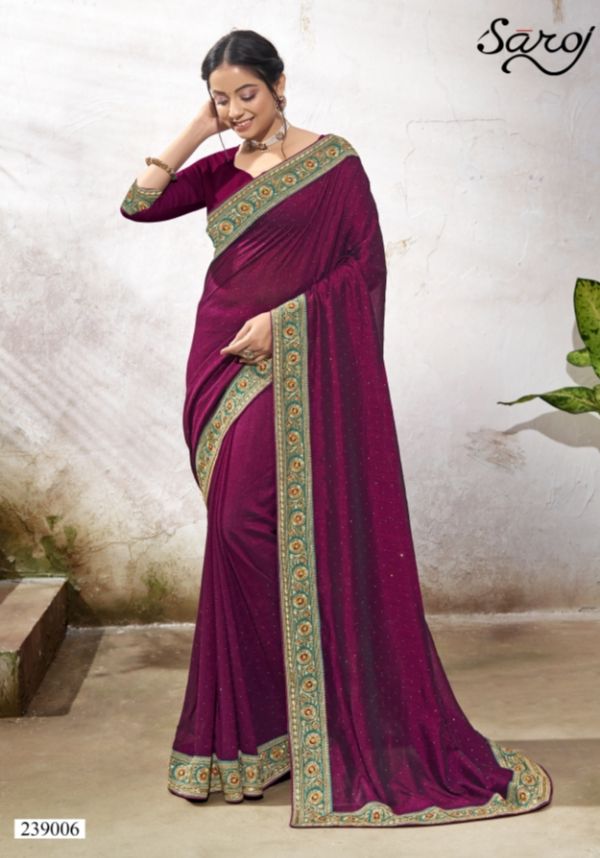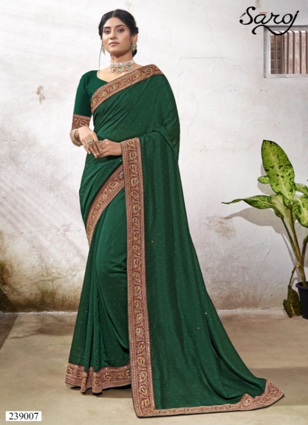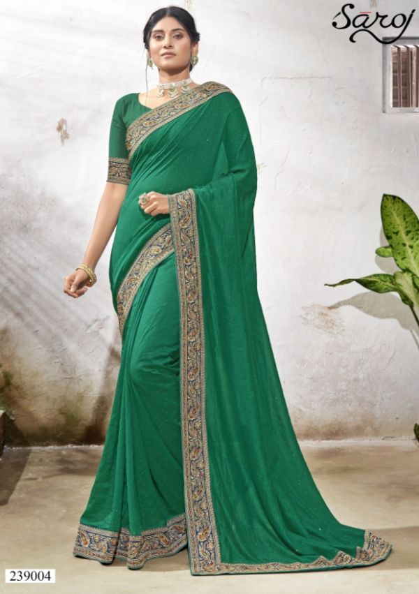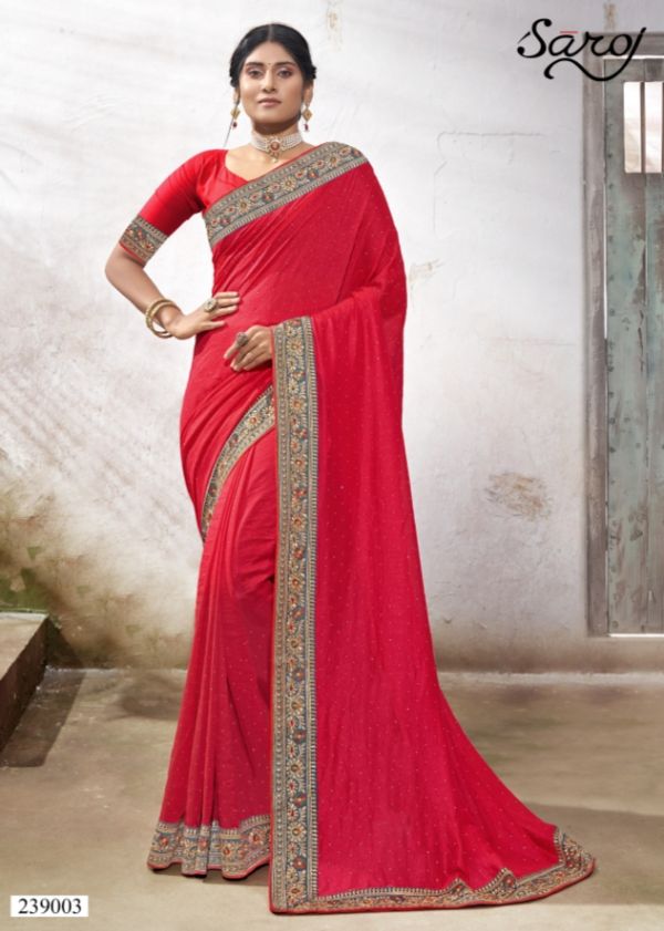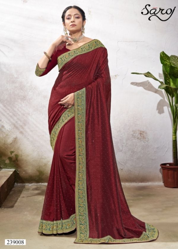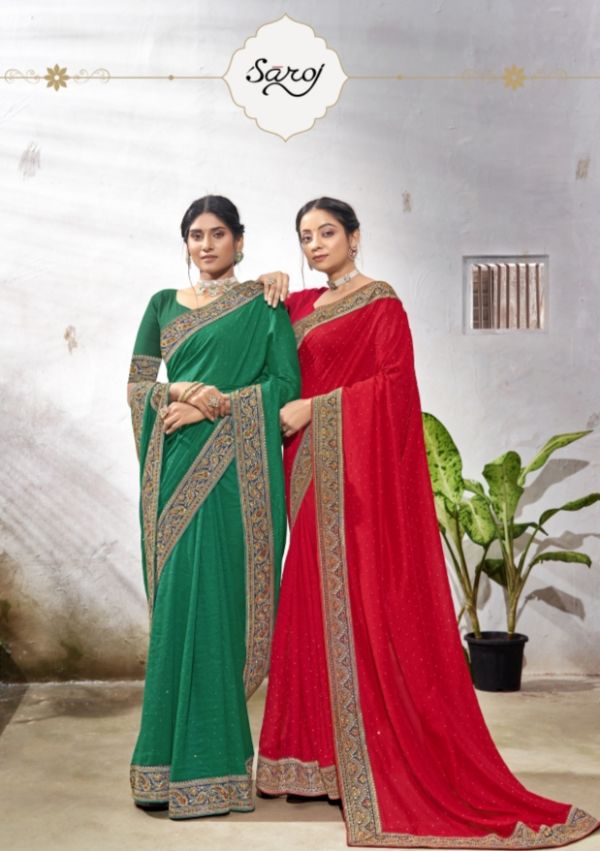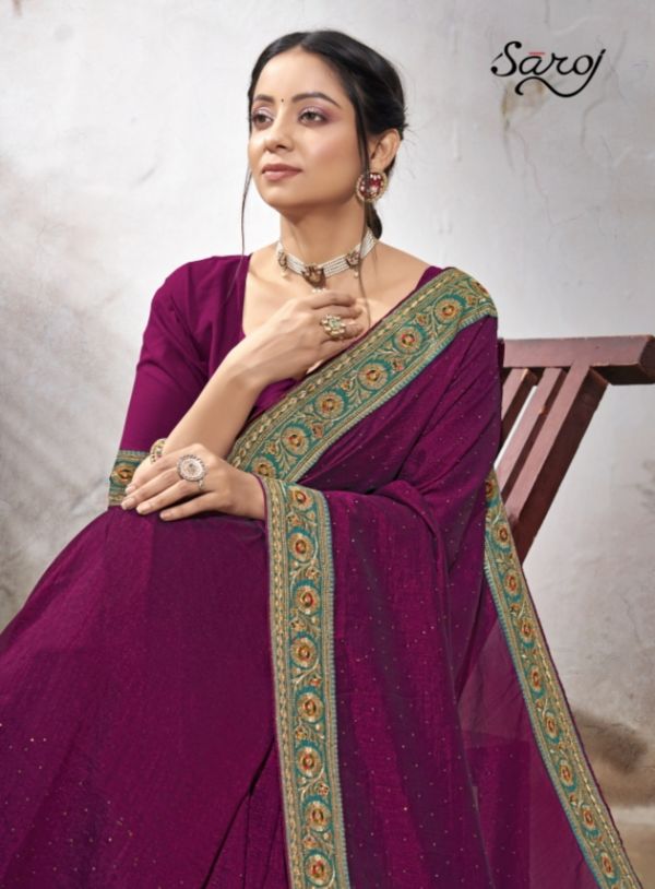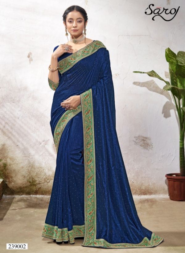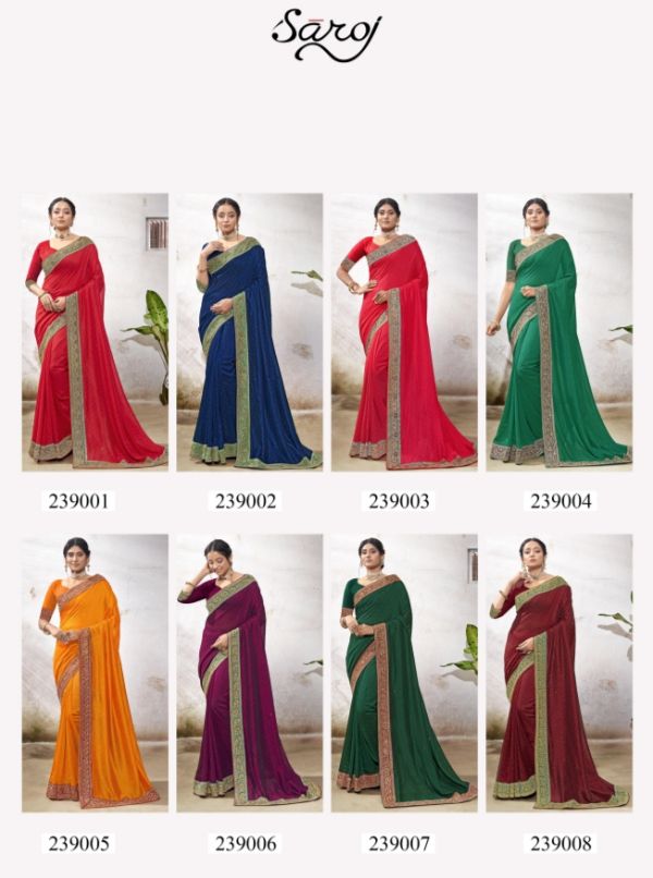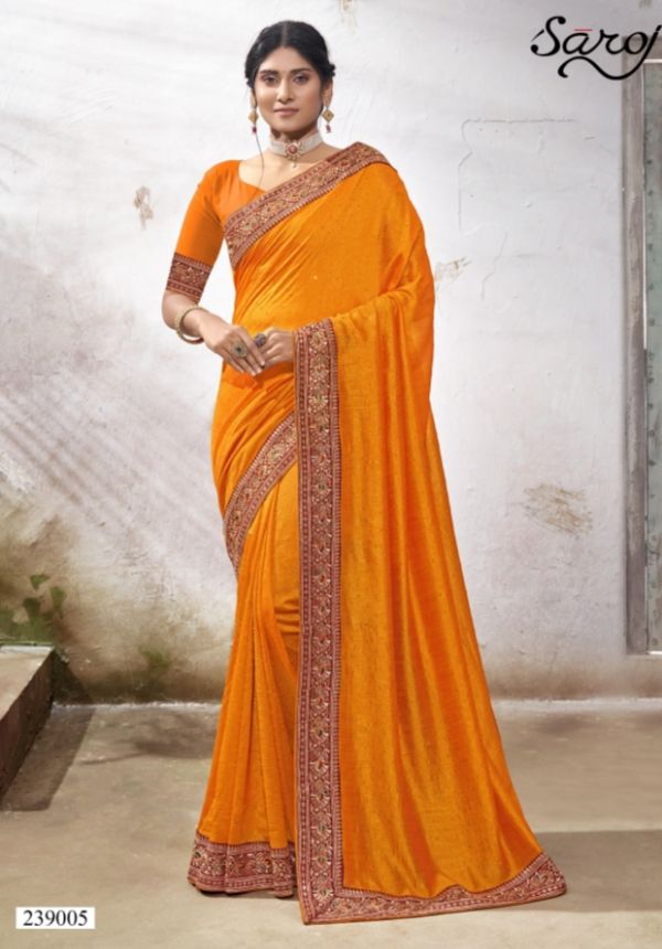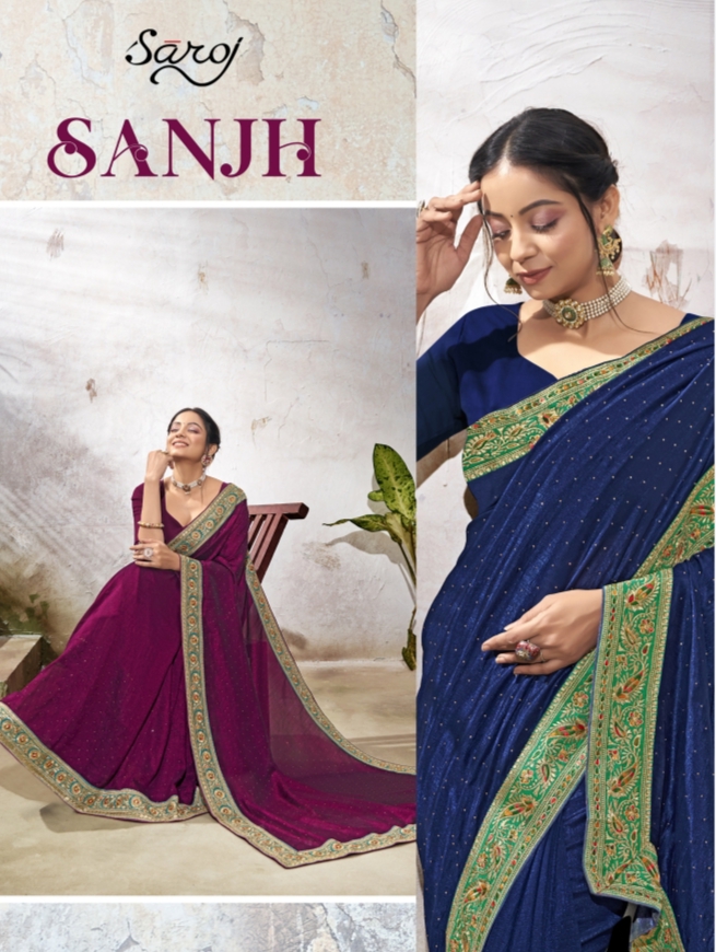 Saroj Presents Sanjh 239001-239008 Series Vichitra Silk Saree With Work Broket Border Saree Collection#1595