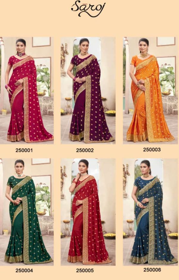 Saroj Presents Sohini 250001-250006 Series Vichitra With Zari And Diamond Work Saree Collection
