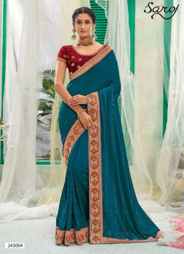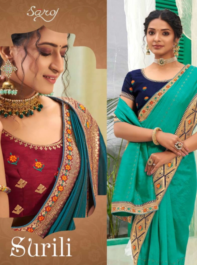 Saroj Presents Surili 243001-243008 Series Vichitra With Embroidery Broder Saree Collection#1649