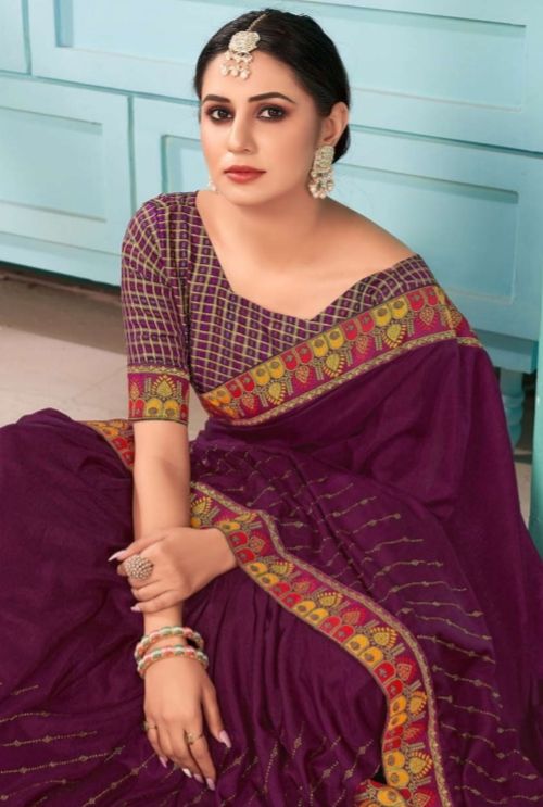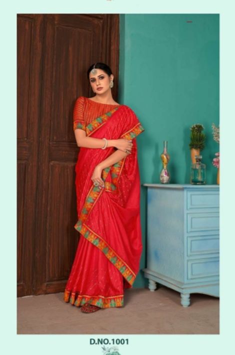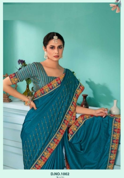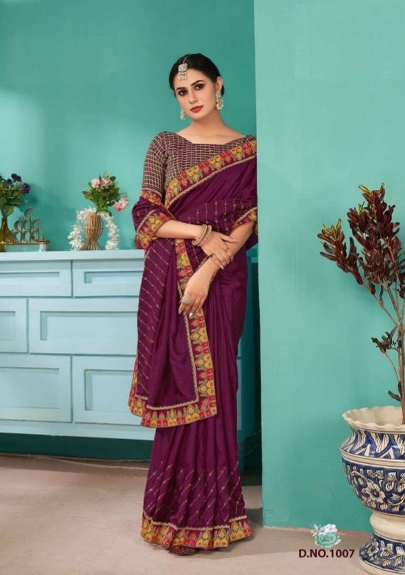Saroj Presents Twinkle 1001-1008 Series Vichitra With Swarovski Work Fancy Saree Collection#1870