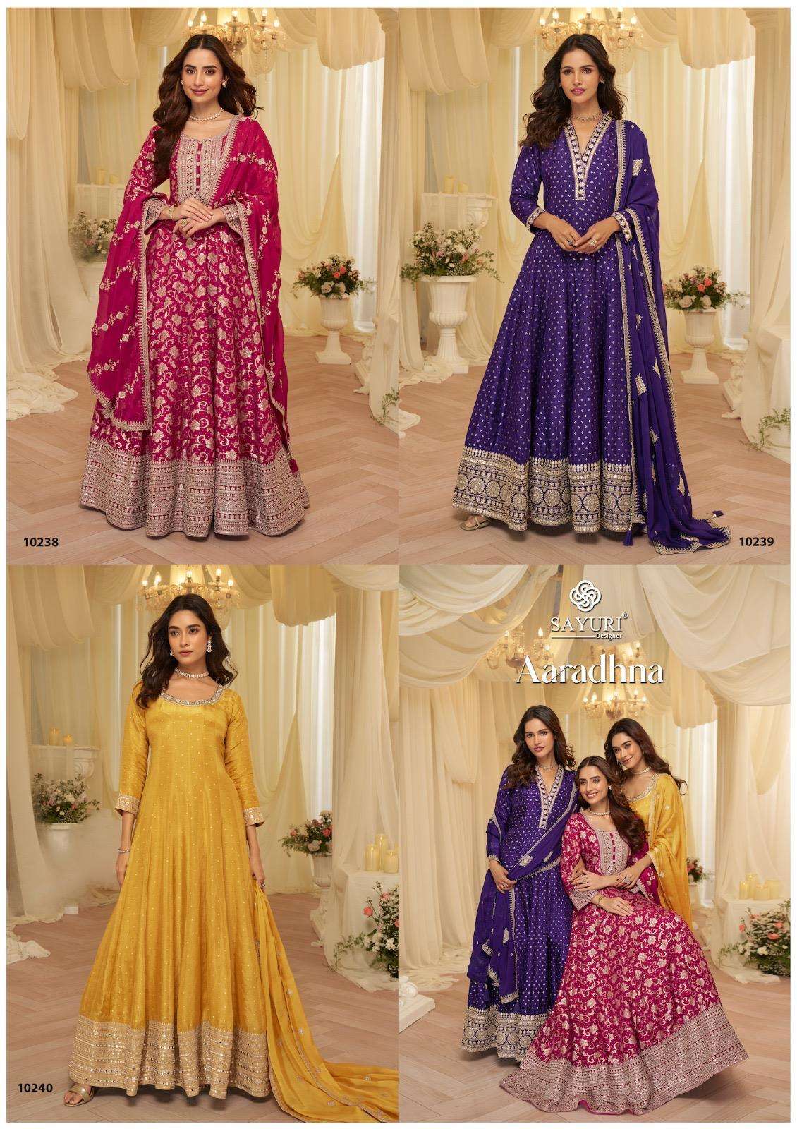 | Catalogue: | SAYURI AARADHANA READY TO WEAR PURE VISCOS JACQUARD SILK EMBROIDERED ANARKALI SUIT |