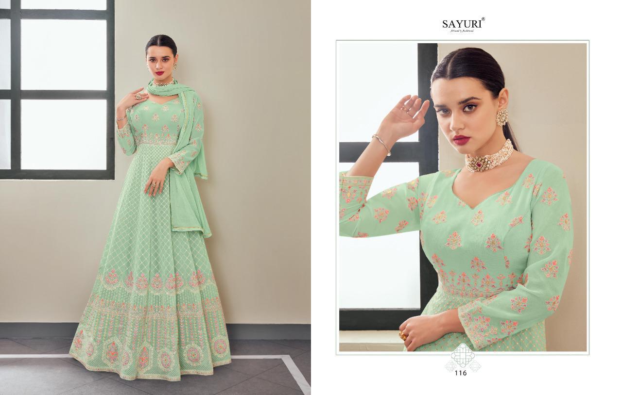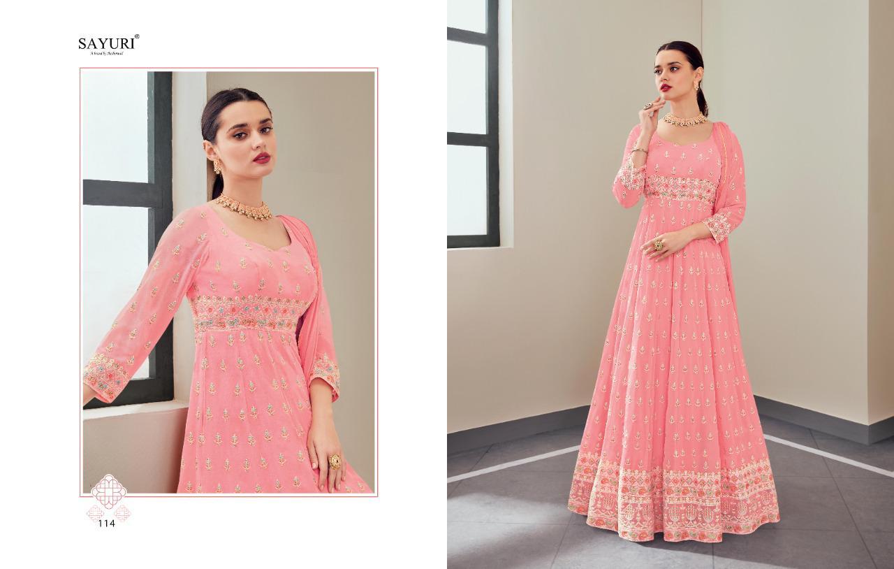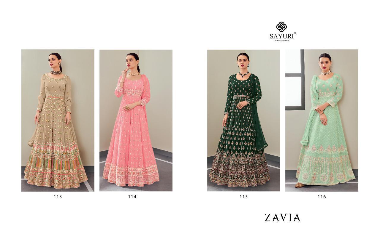 Sayuri Presents Zavia 113 - 116 Series Beautiful Real Georgette With Attractive Designer Work Fancy Party Wear Long Gown Collection