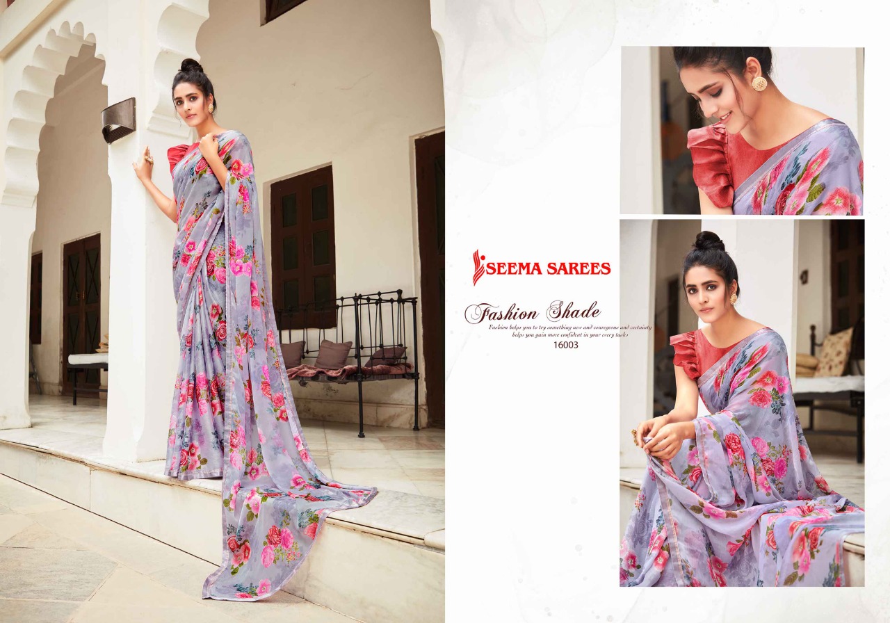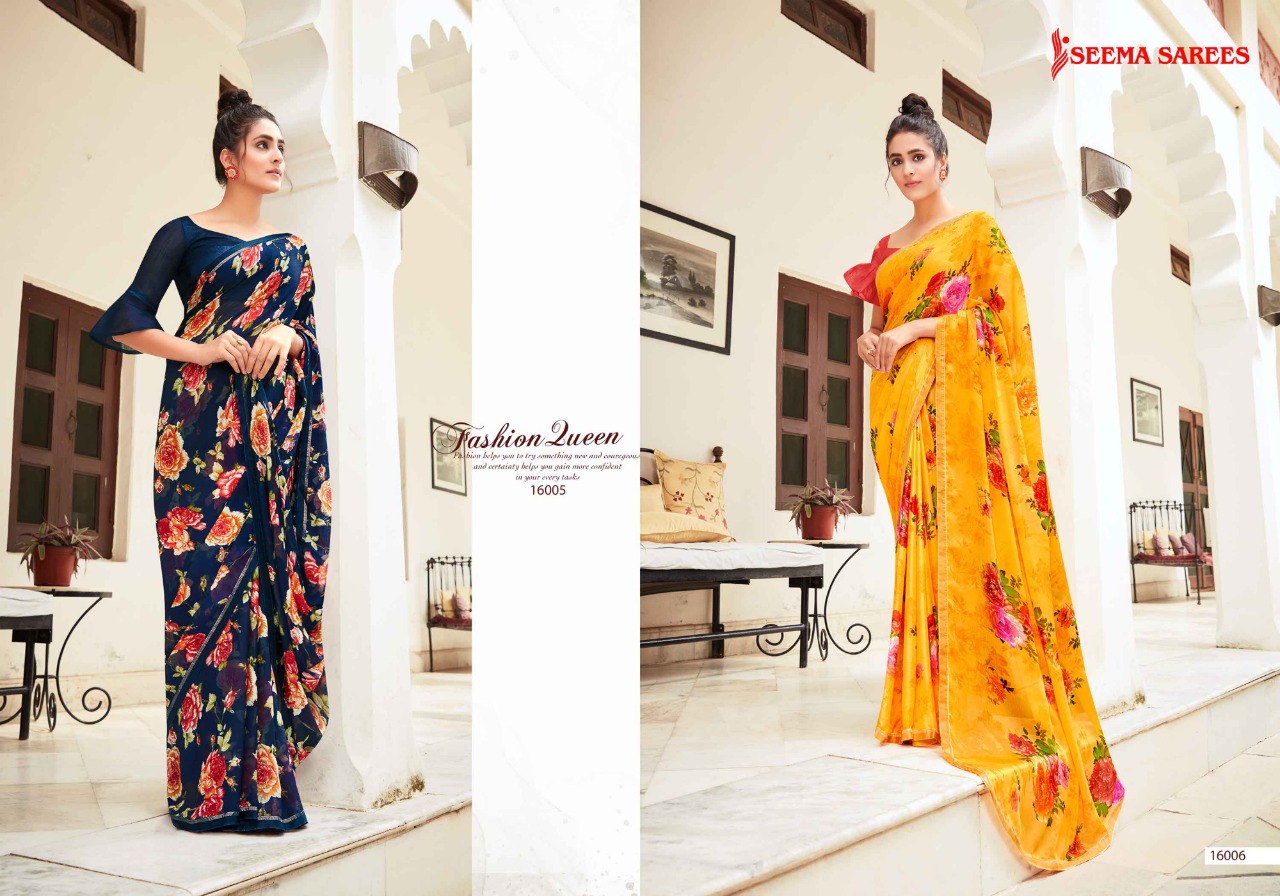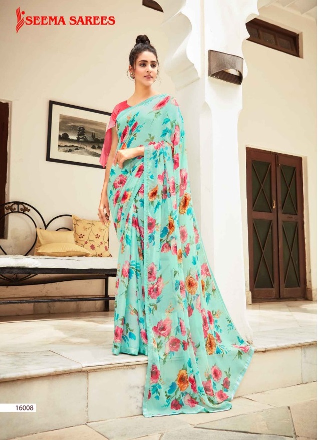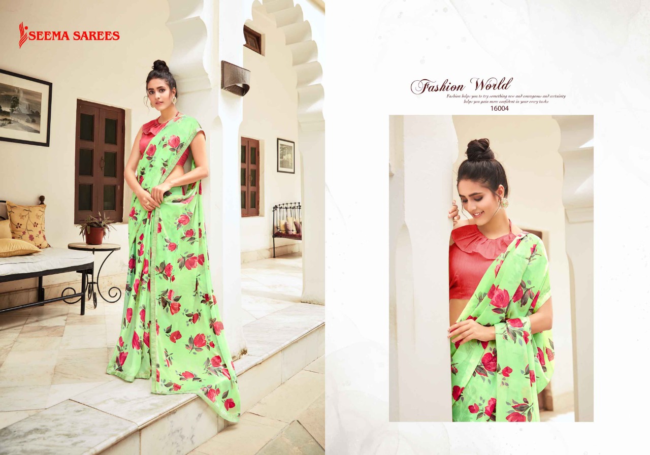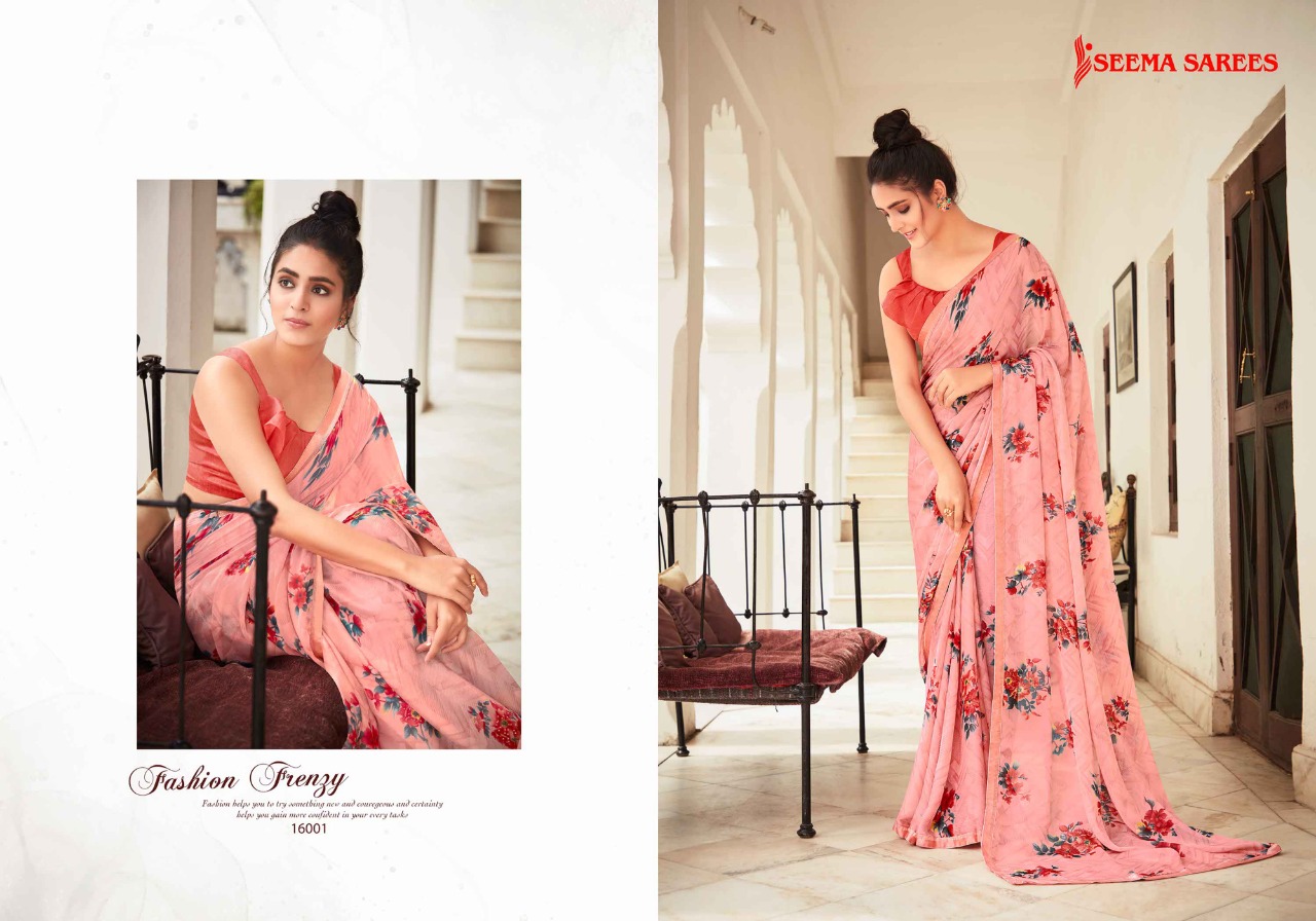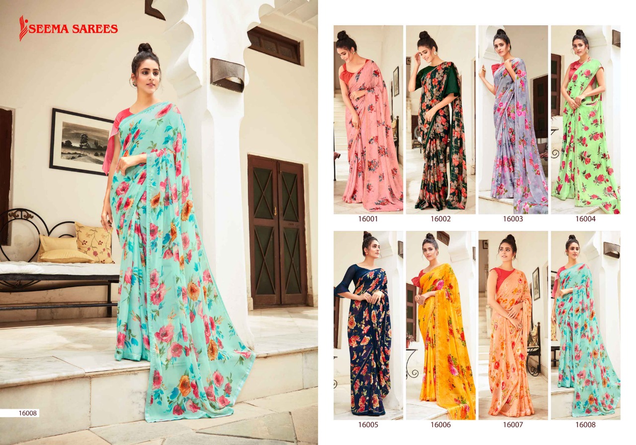 Seema Sarees Presents Chidiya 16001 - 16008 Series Moss Chiffon With Beautiful Work Fancy Casual Wear Saree Collection
