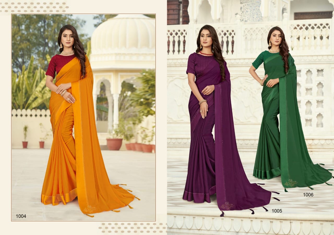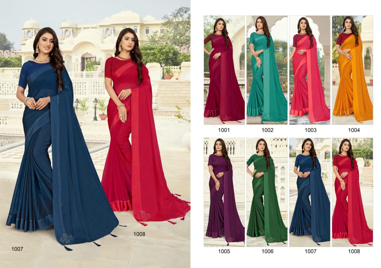 Seema Sarees Presents Lovely Pattern 1001 - 1008 Series Pure Chiffon With Fancy Attractive Colour Combination Beautiful Party Wear Saree Collection