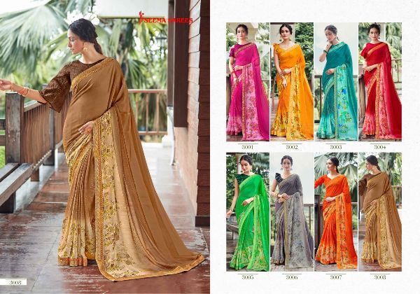Seema Sarees Presents Sizzling Salsa 3001 - 3008 Series Beautiful With Jari Work And Full Of Lace Casual Wear Saree Collection