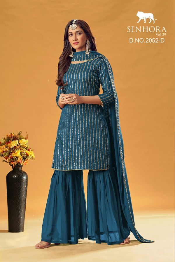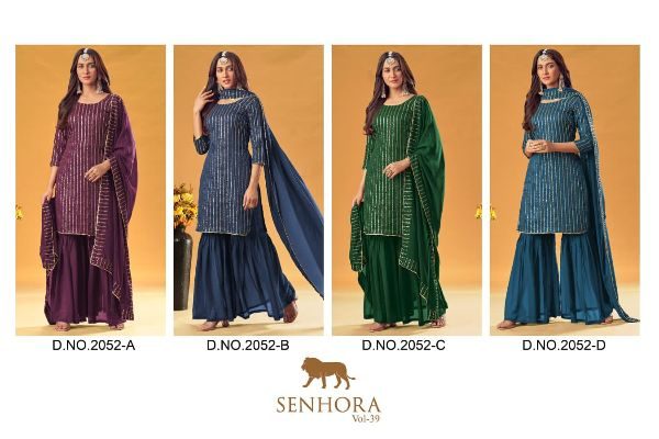 Senhora Presents Vol-39 Dno 2052a - 2052d Series Indian Women Designer Party Wear Plazzo Salwar Suit At Wholesale Price