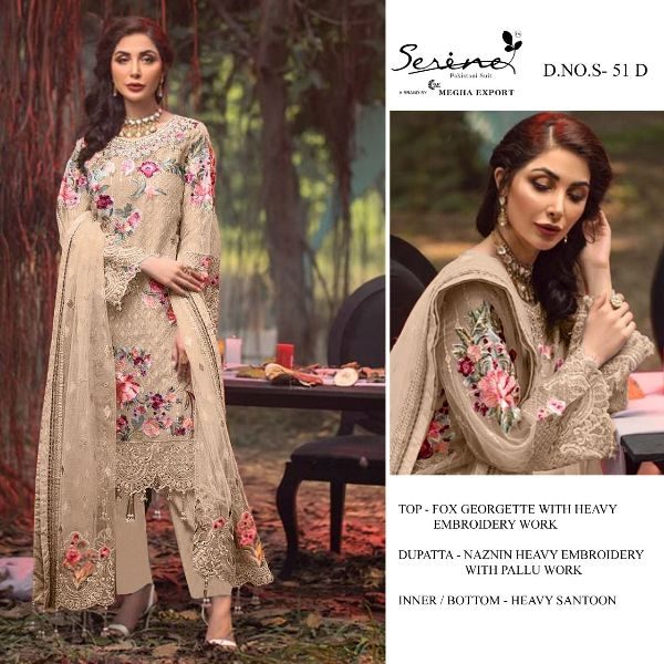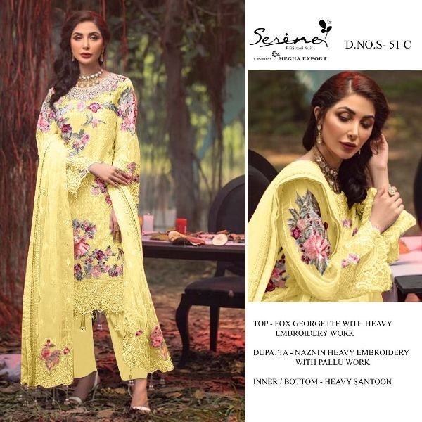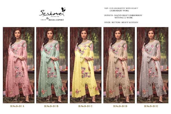 Serene S-51 A To S-51 E Series Georgette Embroidery Work Pakistani Suits At Wholesale Price