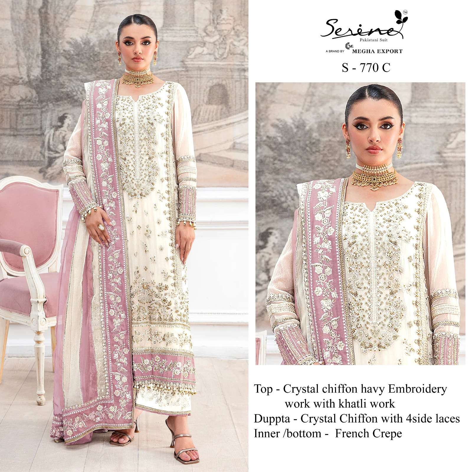 | Catalogue: | Serine S 770 Crystal Chiffon Embroidery & khatli Work Pakistani Suit |