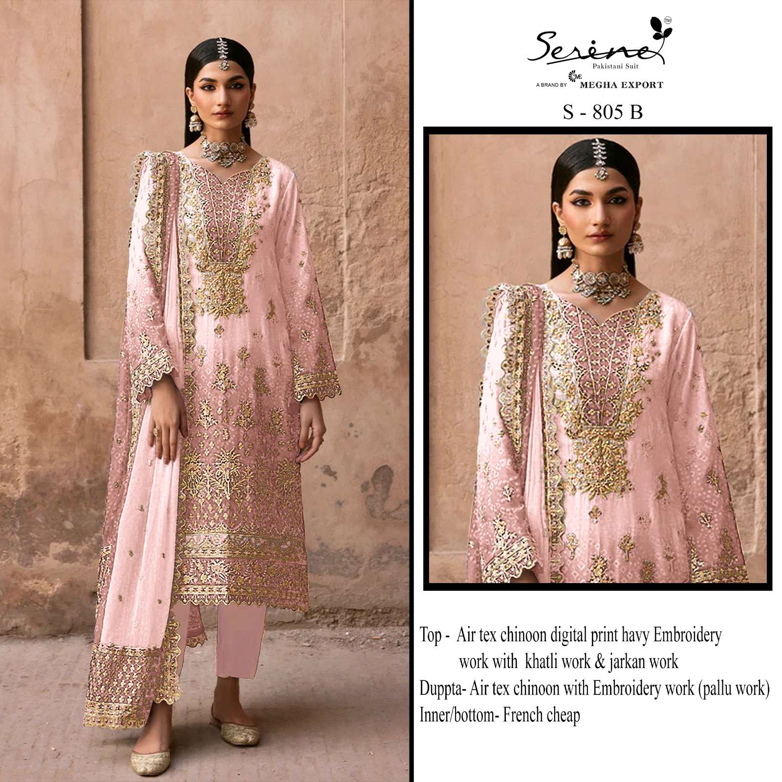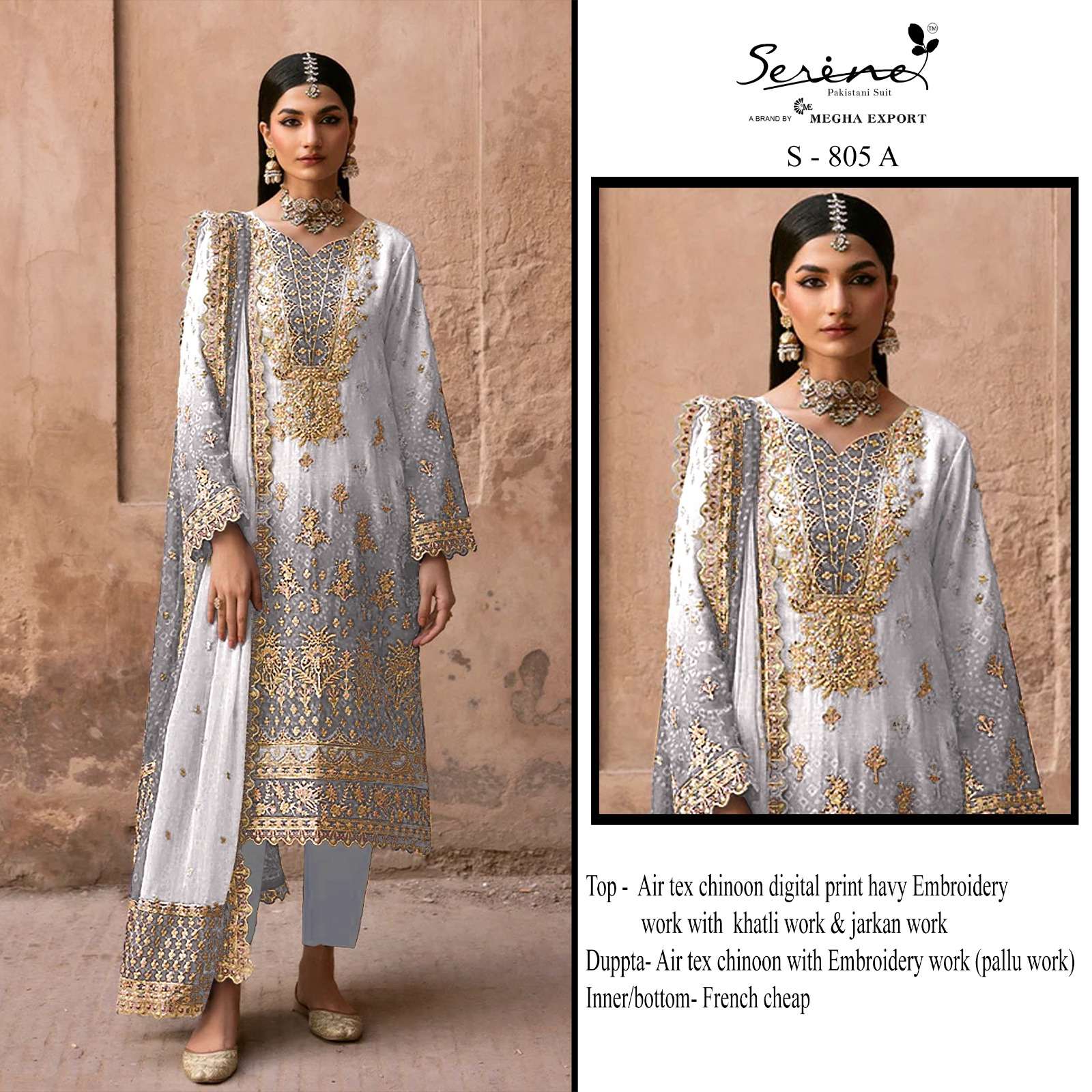 | Catalogue: | Serine S 805 Chinoon Digital Print Embroidery & khatli Work |