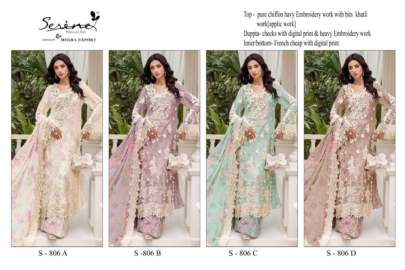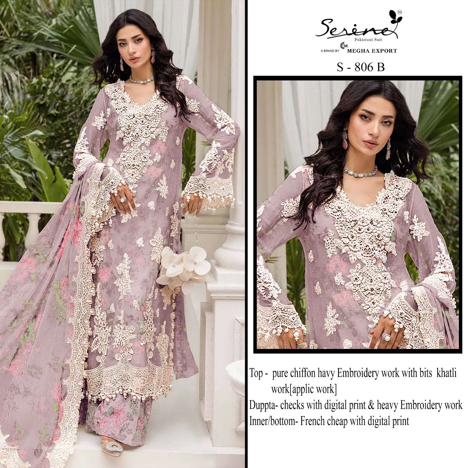 | Catalogue: | Serine S 806 Pure Chiffon Embroidery & khatli Work Pakistani Suit |