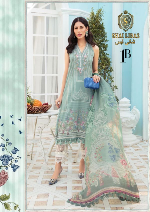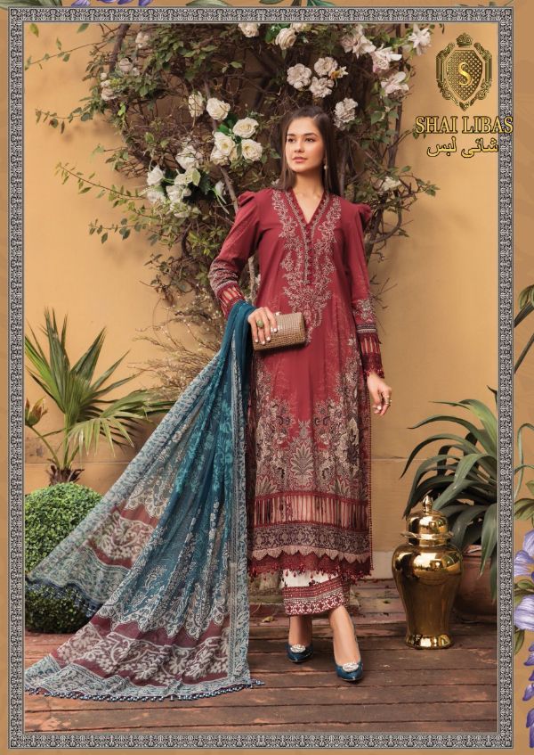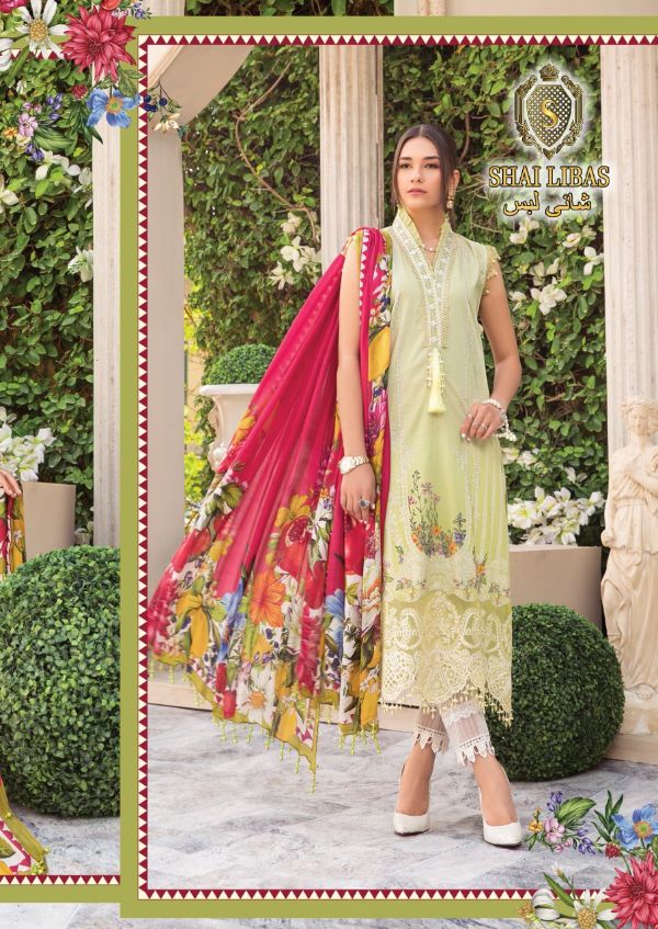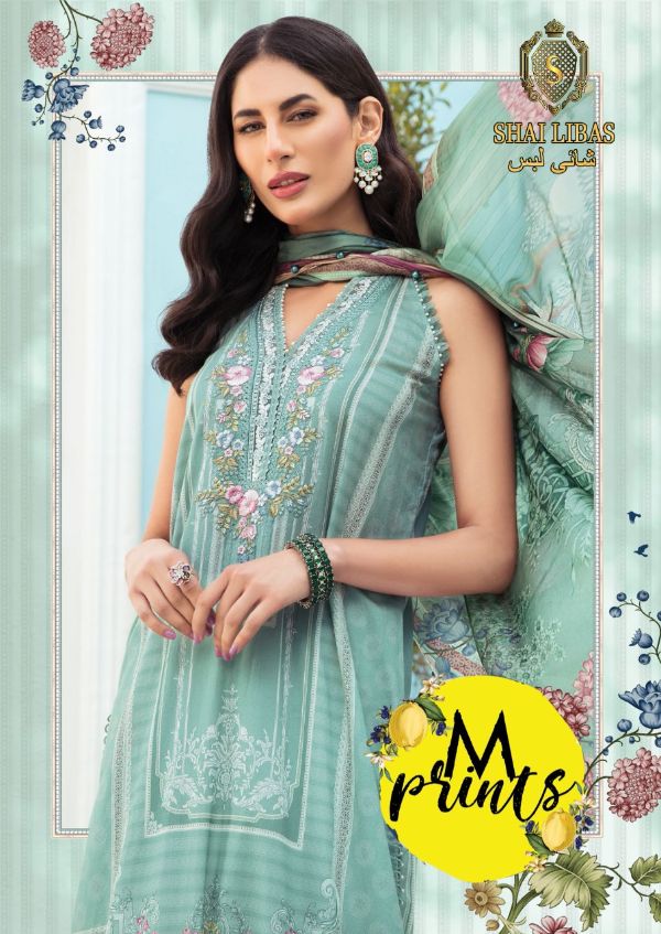 Shai Libaas Presents Mprints Pure Cotton With Exclusive Embroidery Patches Pakistani Suit Collection