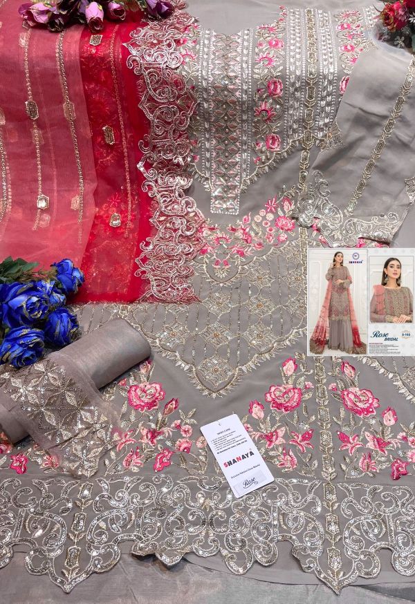Shanaya Presents Rose Bridel S102 Heavy Fox Gerogette With Embroidered Nd Handwork Pakistani Collection