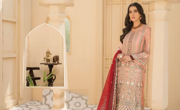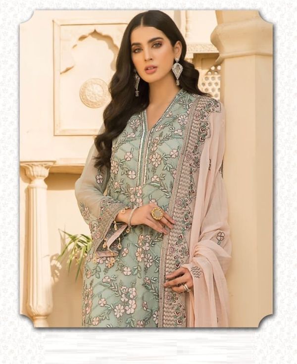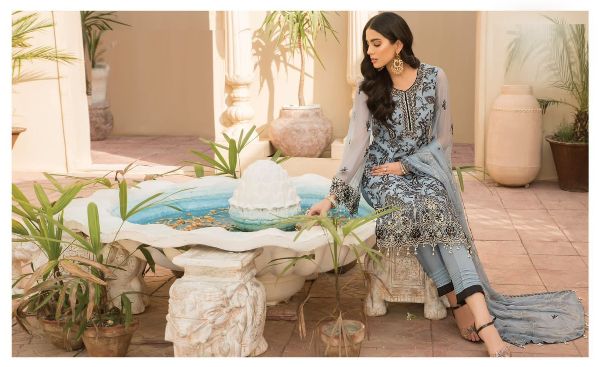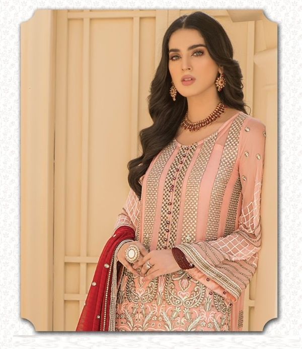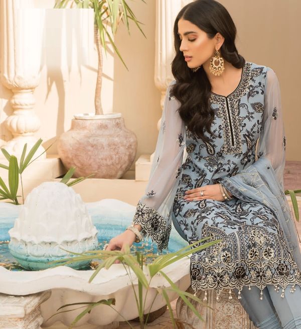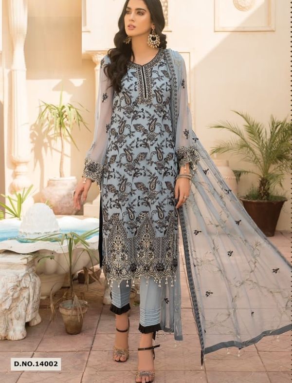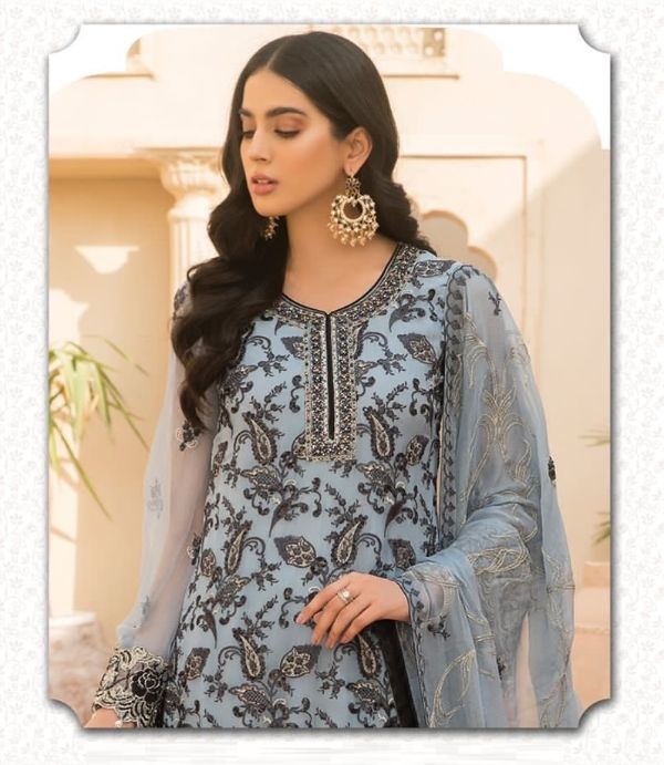 Latest Designer pakistani suits Collection. Exclusive with Foil & Thread Embroidery Work gives a Fashionable Look, High sensed style and luxury makes you ready for envious glazes and very rich & Royal in the Party, Function, Event etc.