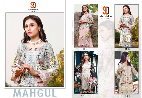 Sharaddha Designer Presents Mahgul-4 4001-4004 Series Lawn Cotton With Heavy Embroidery Pakistani Suit Collection