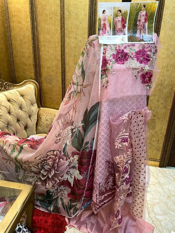 Latest Designer pakistani suit Collection. Exclusive with Foil & Thread Embroidery Work gives a Fashionable Look, High sensed style and luxury makes you ready for envious glazes and very rich & Royal in the Party, Function, Event etc.