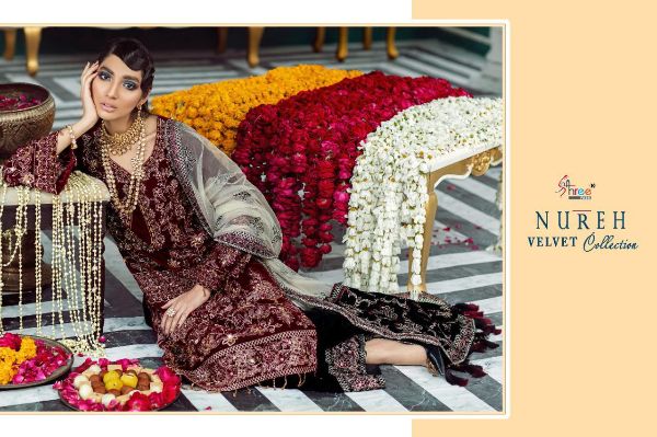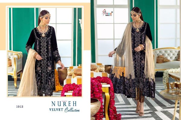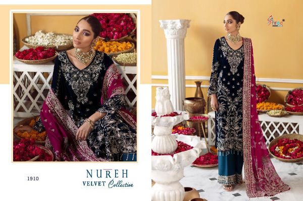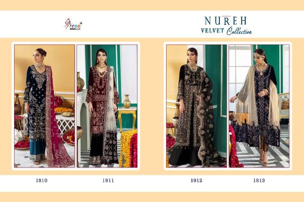 Shree Fabs Presents Nureh Velvet Collection 1910 - 1913 Series Velvet With Exclusive Embroidery Fancy Pakistani Suits Collection