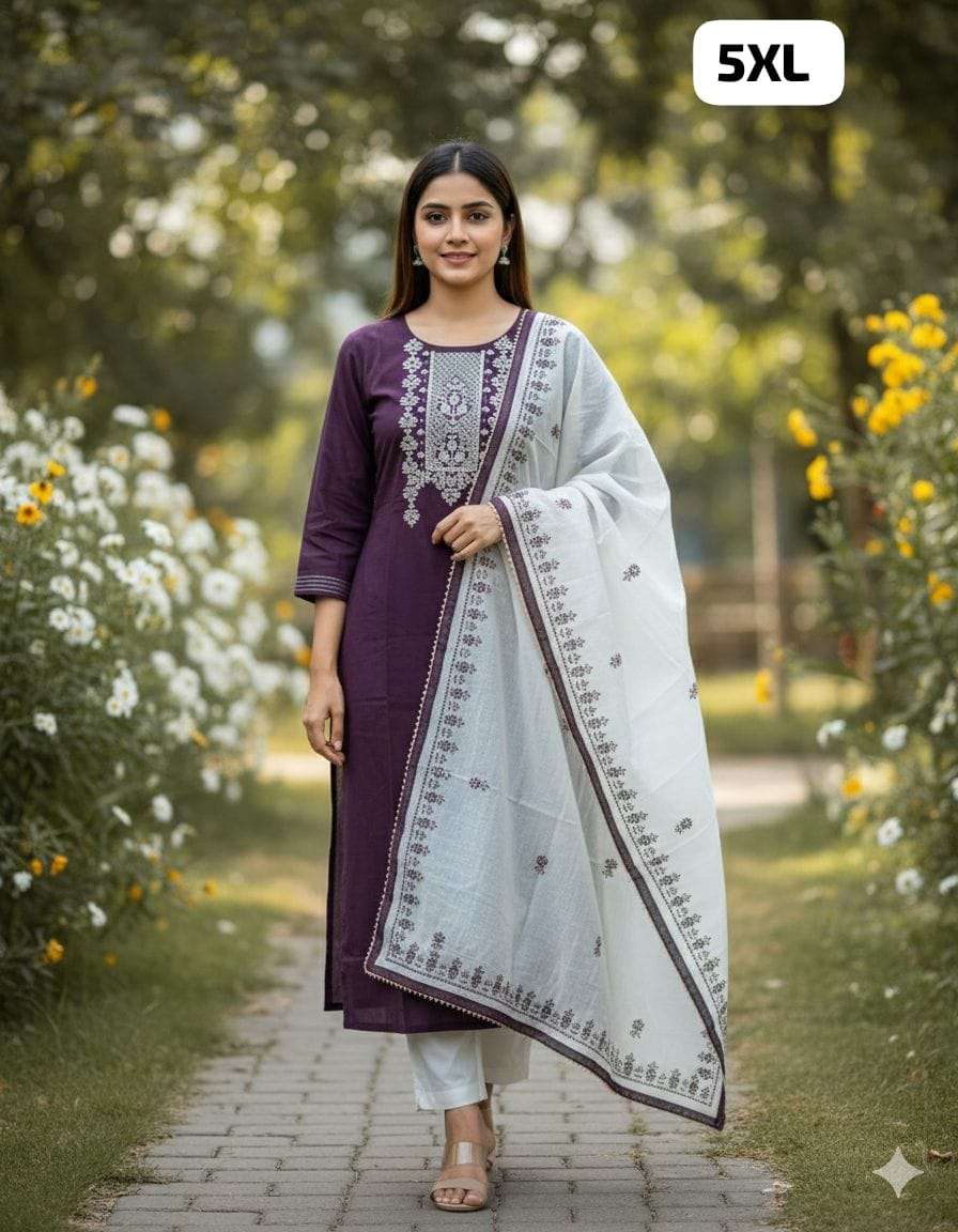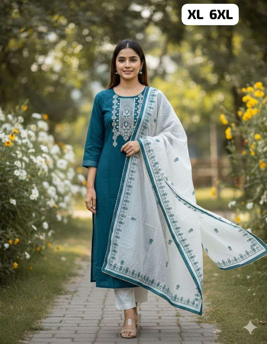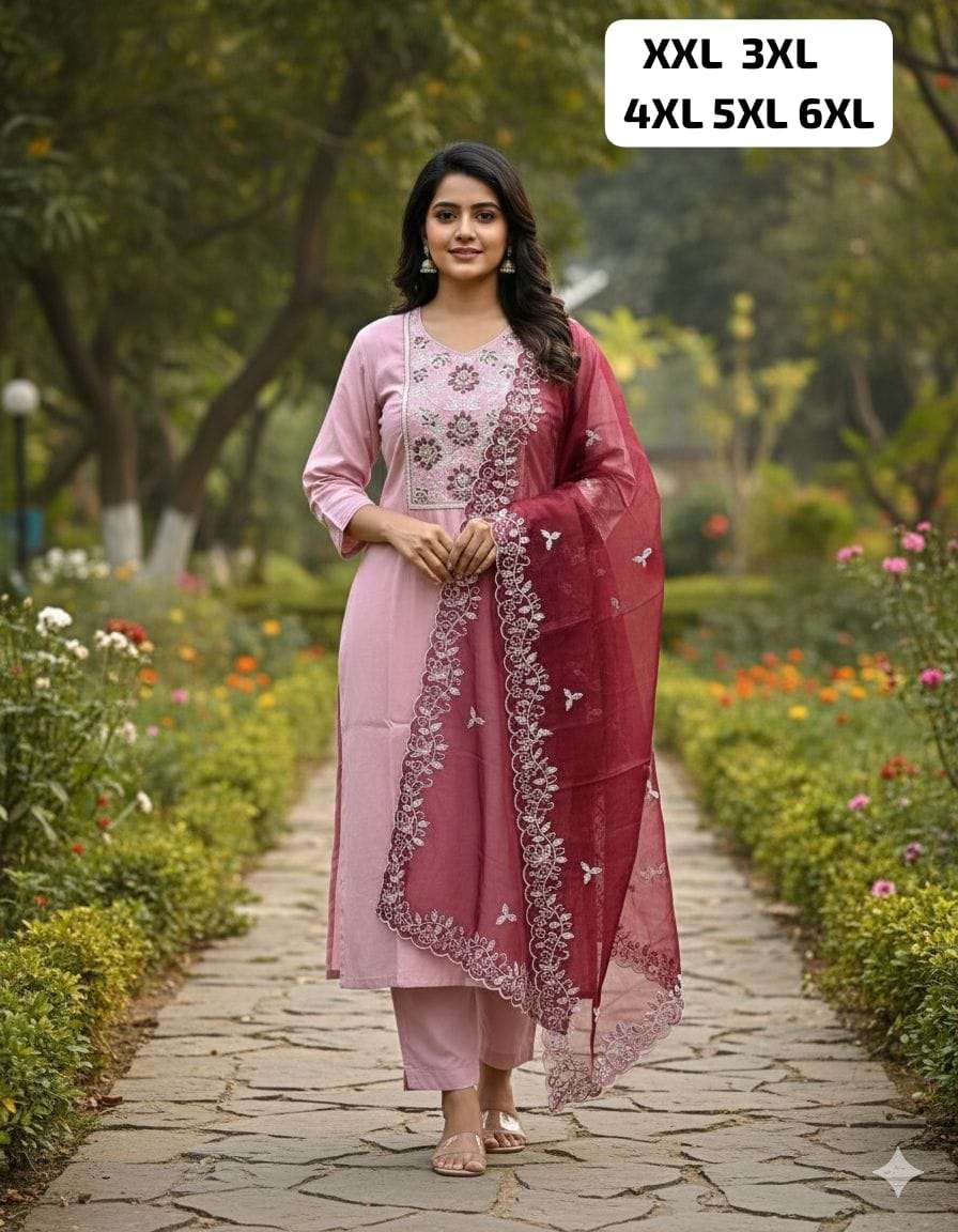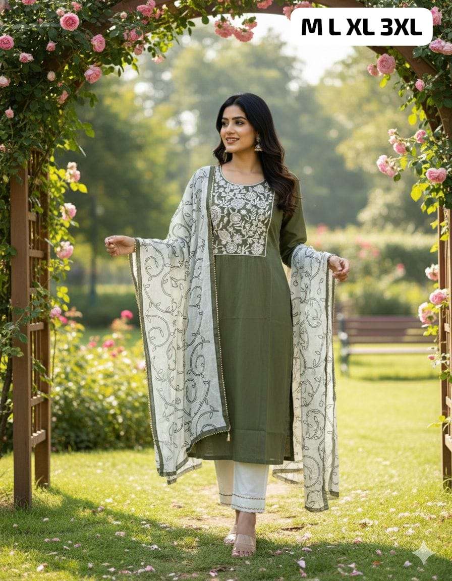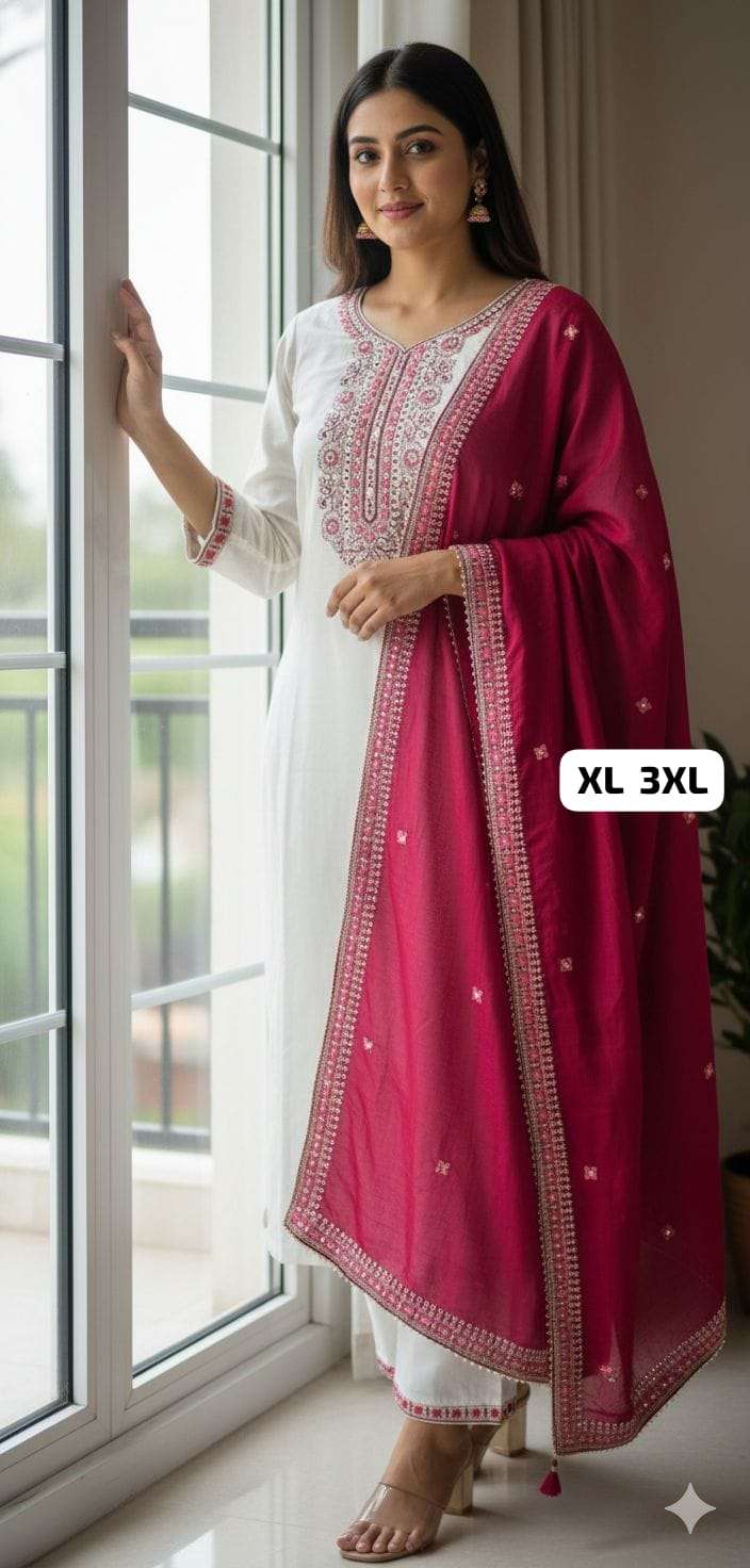 *HAND WORK KURTI WITH DUPATTA PENTS SET WITH WORK ON SLEEVS*