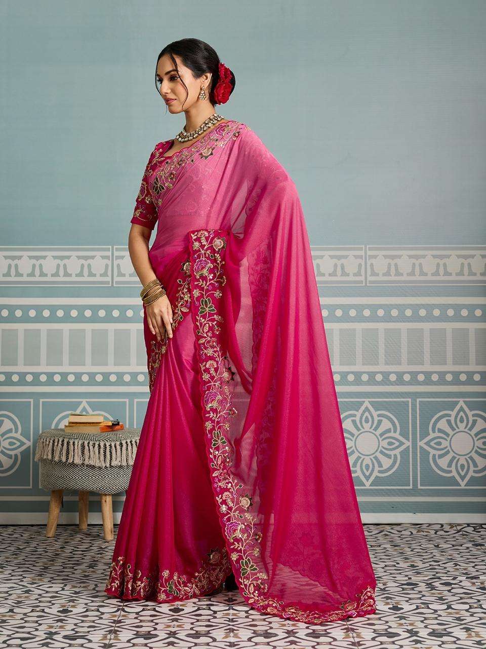 Looking some one for this same colour beautiful Saree for wedding on premium Soft Silk fabric with C-pallu Embroidered work & cutwork Border with Mono Banglory Silk blouse Peice.
