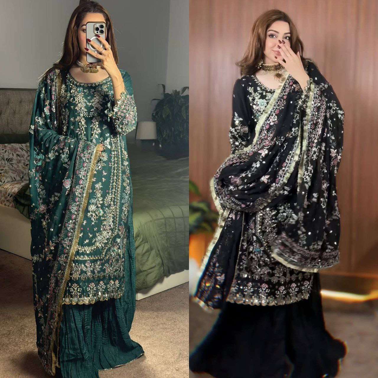 TOP FABRIC : HAVY FOX GOARGATE WITH HAVY EMBROIDERY WORK WITH MOTI AND MIRROR WORK AND MOTI LACE WORK
