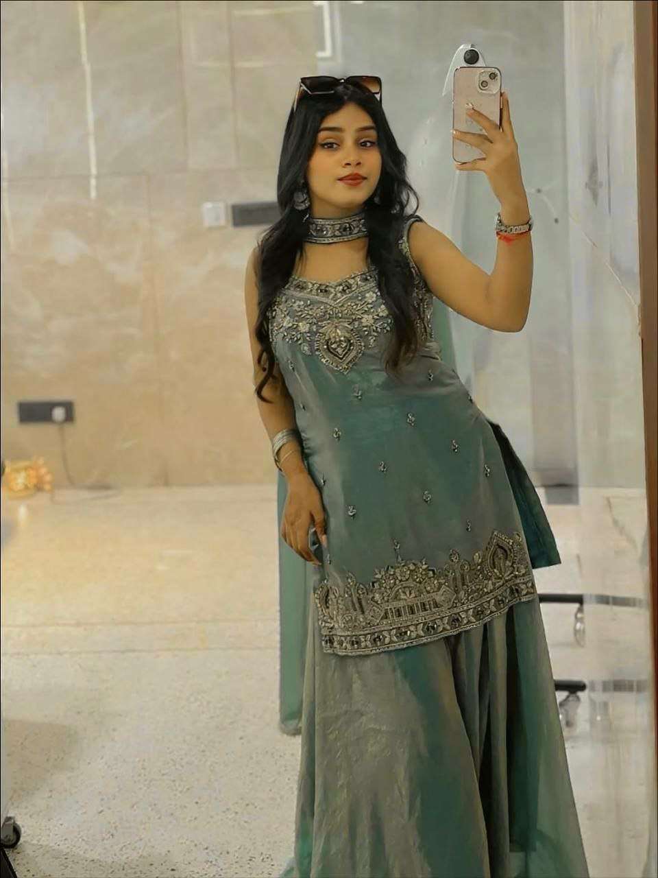 | Work : | embroidered,sequence work |