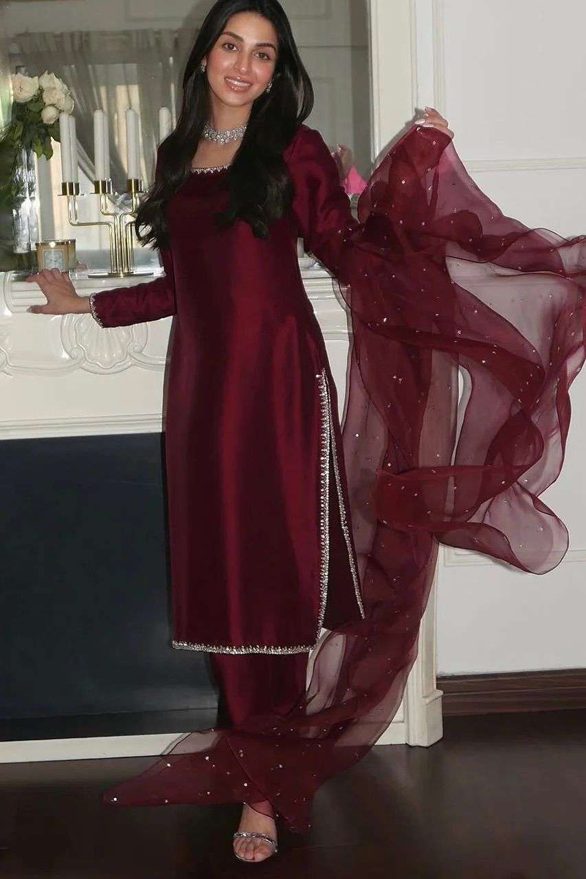 Presenting New Ready-made Collection With jimmy choo Silk And Heavy Embroidery Sequence Work Top-Bottom And Dupatta Set Fully Stitched Ready To Wear Collection