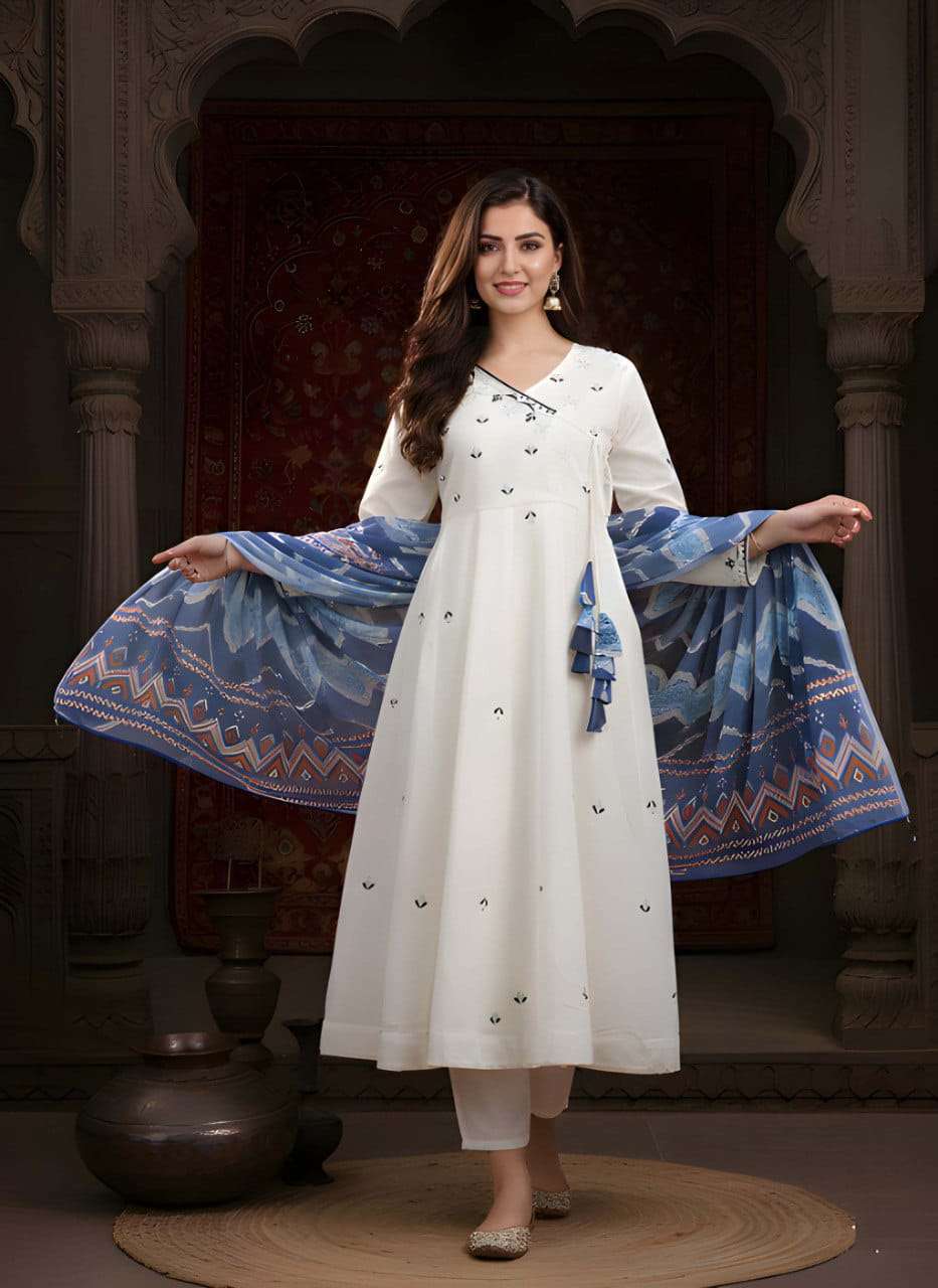 Product Name : woman Angrakha style anarkali kurta with dupatta suit