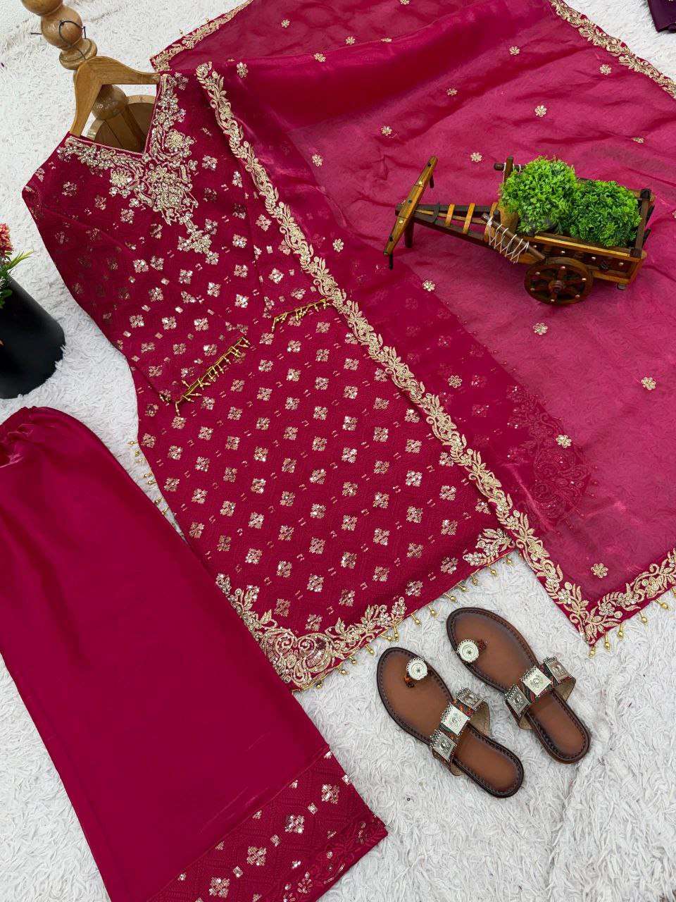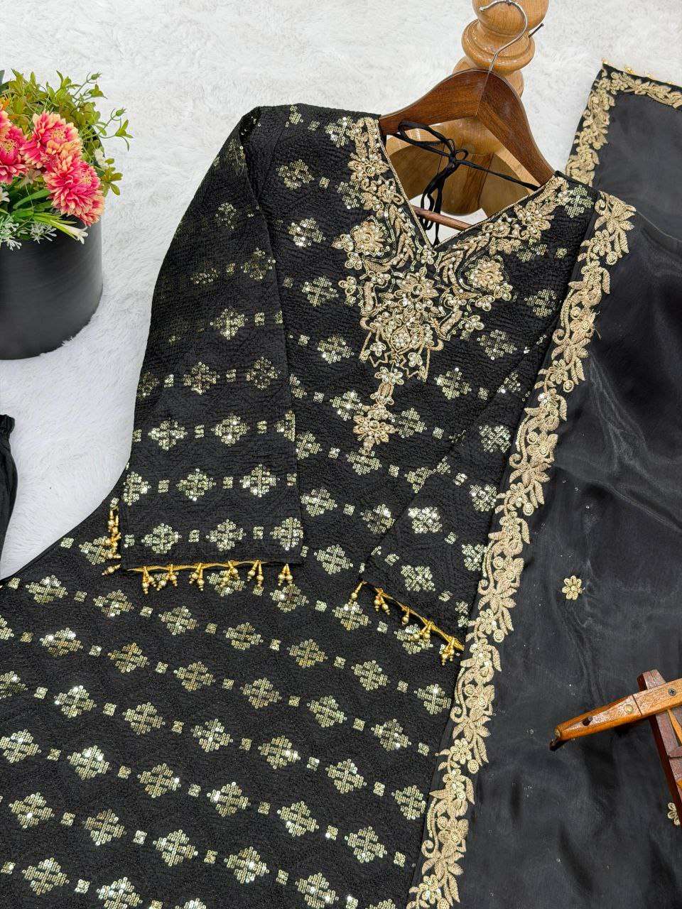 Top Fabric: Pure GMY SILK With Heavy Embroidery Sequence Work With Full Sleeve